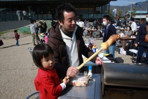 家族との共同作業として棒パン作りをしました。竹に巻いた生地をゆっくりと焼きながら、家族と話すなど楽しい時間を共有しました。 |