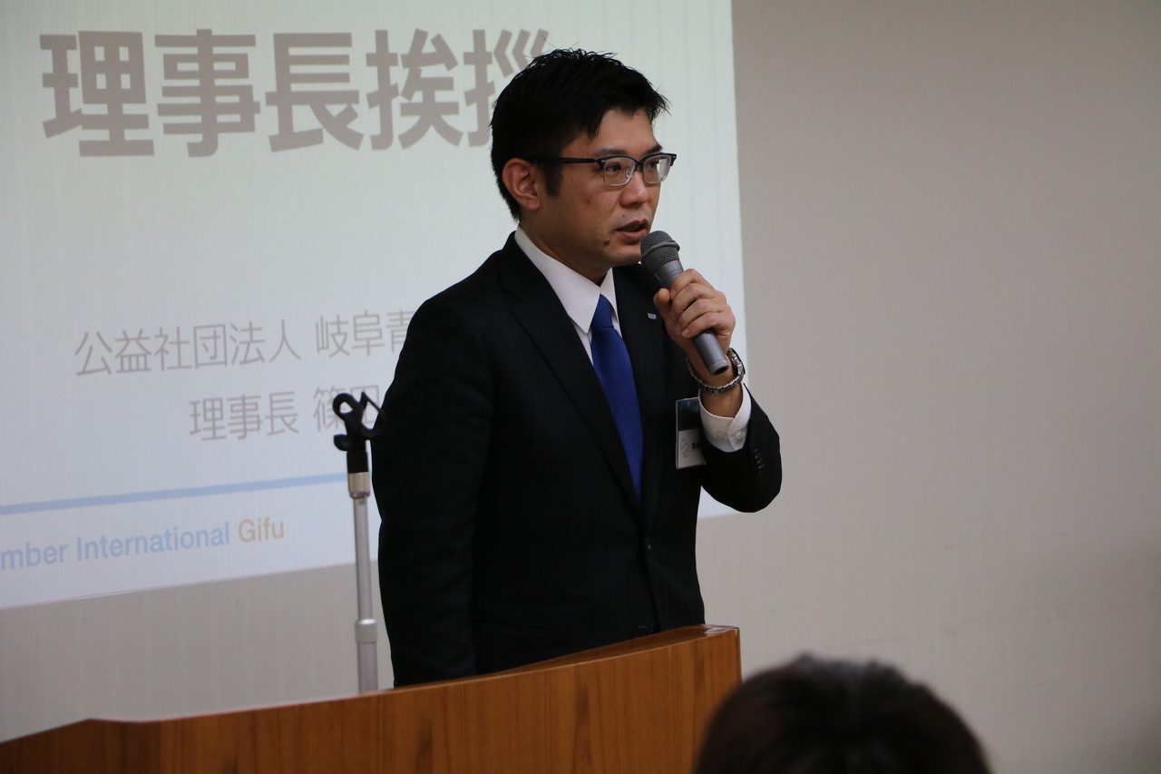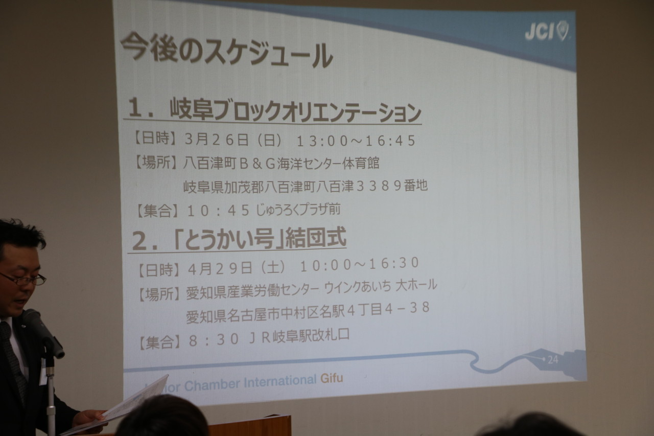 開会の挨拶の後、(公社)岐阜青年会議所 篠田理事長より「とうかい号の洋上研修では多くの成長の機会があります。皆さんは会社から期待をされて乗船者として選ばれています。積極的に挑戦をし、成長していってください。」と述べられ、事務局のメンバー紹介へと続きました。