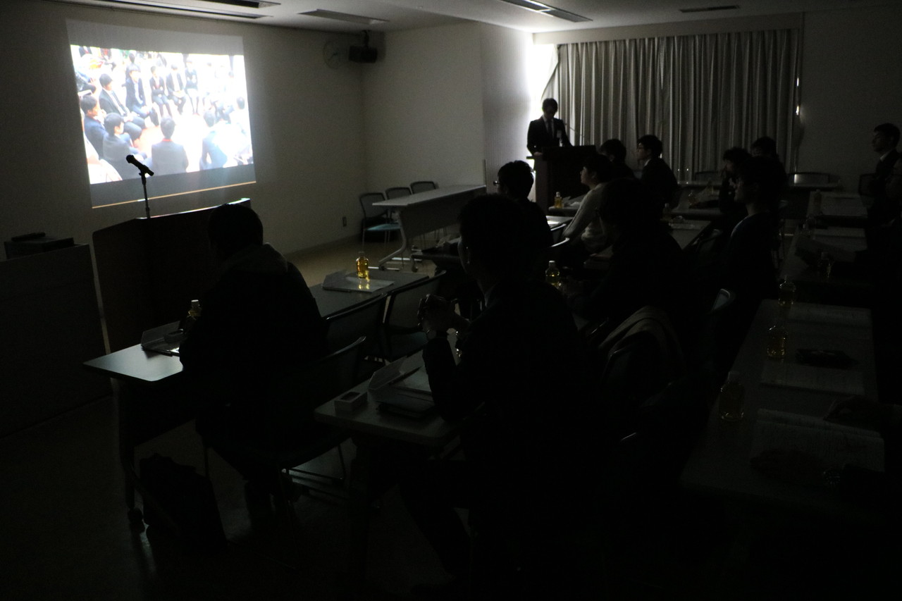 続いて乗船者には昨年度の「とうかい号」の紹介映像を見て頂きました。講師による講話を始めとする様々な船内活動や、寄港地活動への理解を深めて頂きました。そして、一緒に乗船する仲間同士の自己紹介や名刺交換、アイスブレイクが行われました。時間が経過するごとに、参加された乗船者の皆さんの緊張がほぐれていきます。最後は和気あいあいとした雰囲気となっていました。