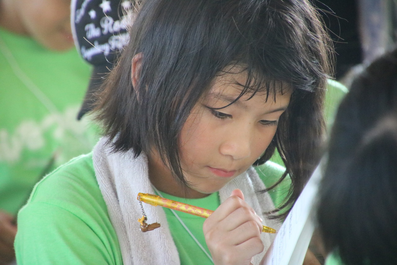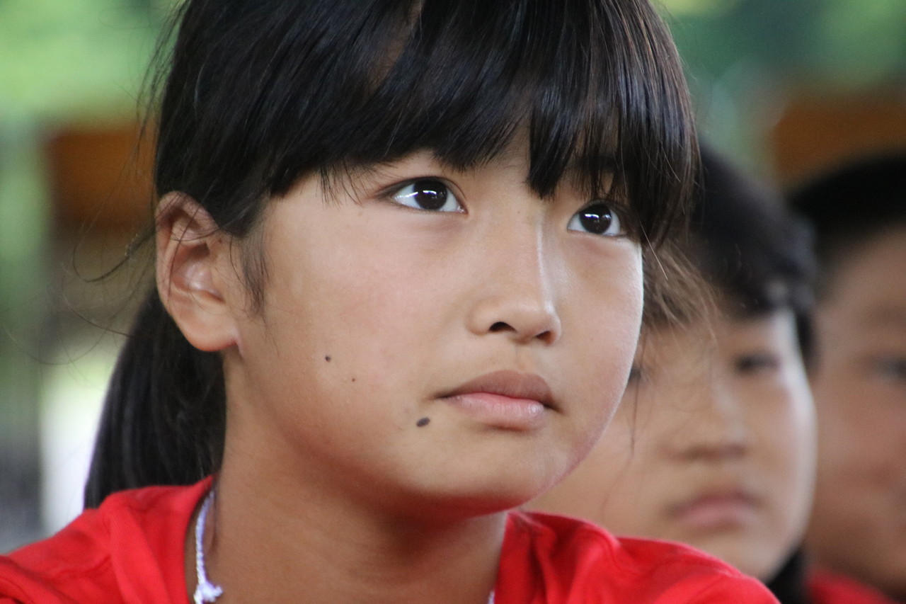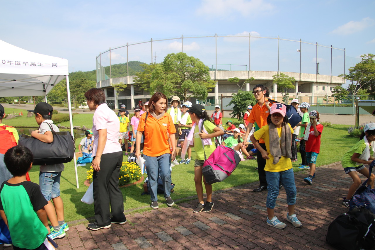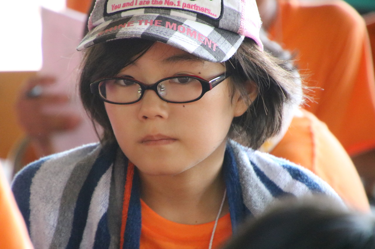 開会式と全体オリエンテーションが、いよいよ始まりました。子供たちは3日間の注意事項に真剣に耳を傾けていました。チーム毎のTシャツが配られました。