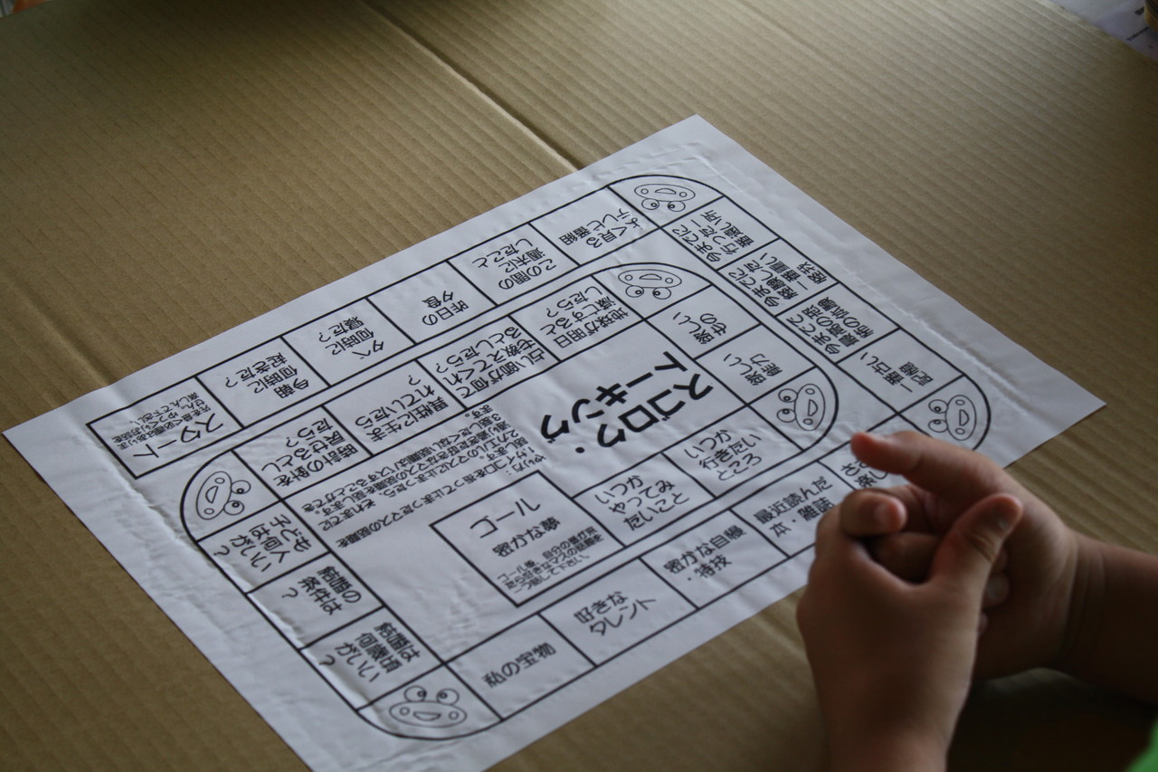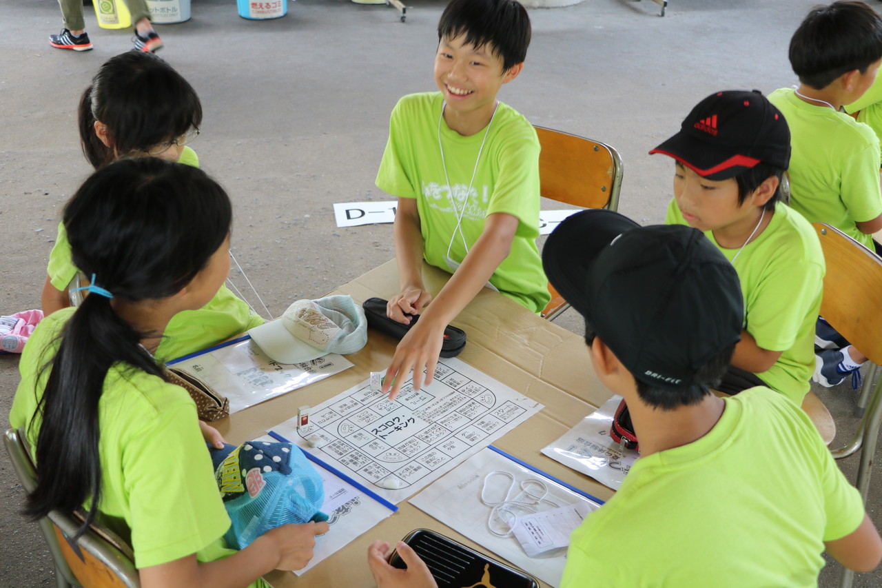 そして、チームに分かれ、「世界がもし100人の村だったら」を行いました。世界の人口を100人に例えることで、「どんな言葉をどれだけの人が使っているのか」「どの地域にどれくらいの人が住んでいるのか」を知ることができます。じゃんけんに勝つことで三段階に進化しゴールする「進化じゃんけん」も併せて行うことで、チームの絆が深まったようでした。