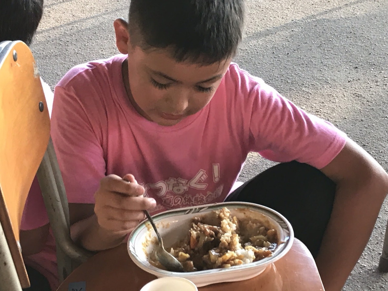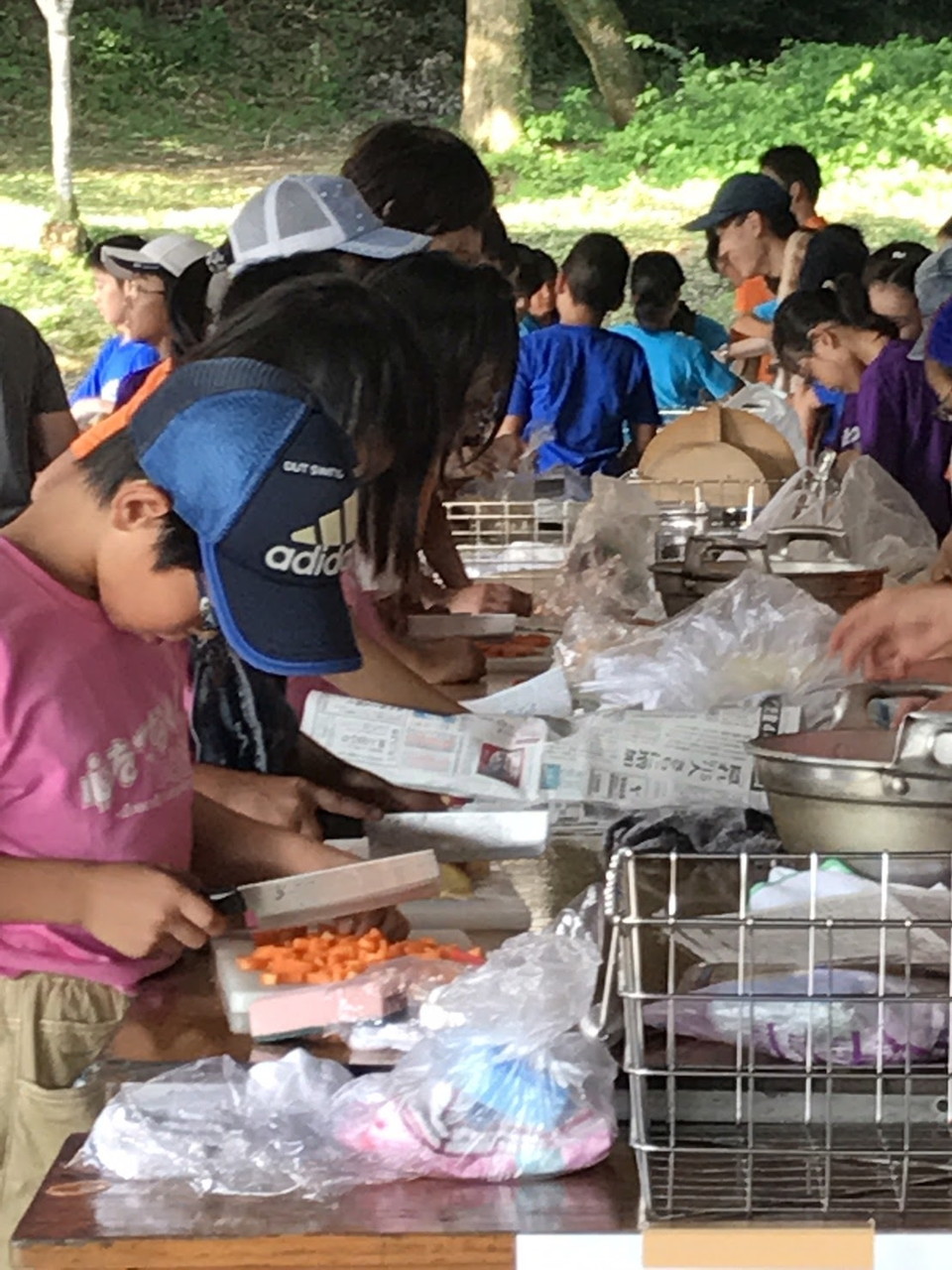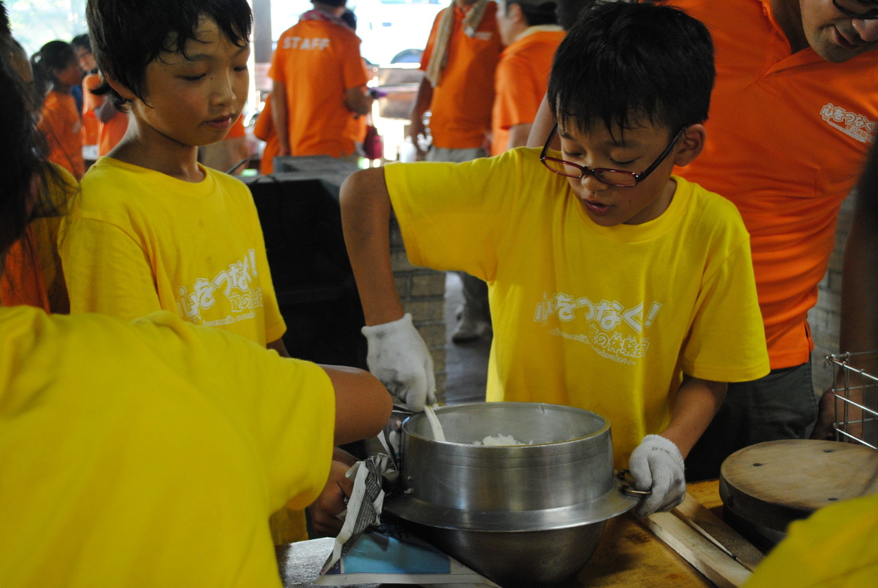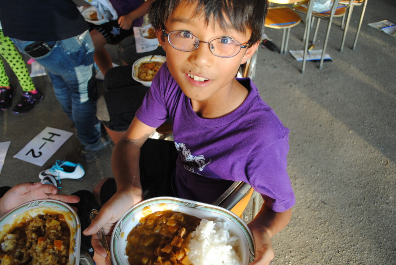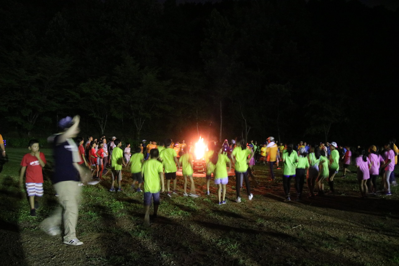 1日目の夕食。チームの仲間と協力し合い、カレー作りをしました。薪を組む人、野菜を切る人、火加減を調整する人、ご飯を炊く人、全ての役割の人が自分の役割を全うしないと美味しいご飯が炊けません。手順が書かれた紙を見ながら、互いに確かめ合いながら作業が進んでいきました。材料を落としてしまったチームがいましたが、他のチームから少しずつ分け合シーンがありました。自分たちのチームだけではなく、他のチームとも絆が少しづつ出来てきてることを感じました。