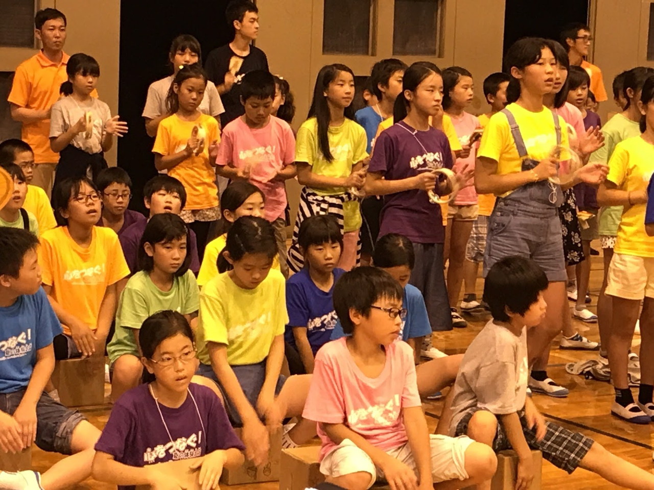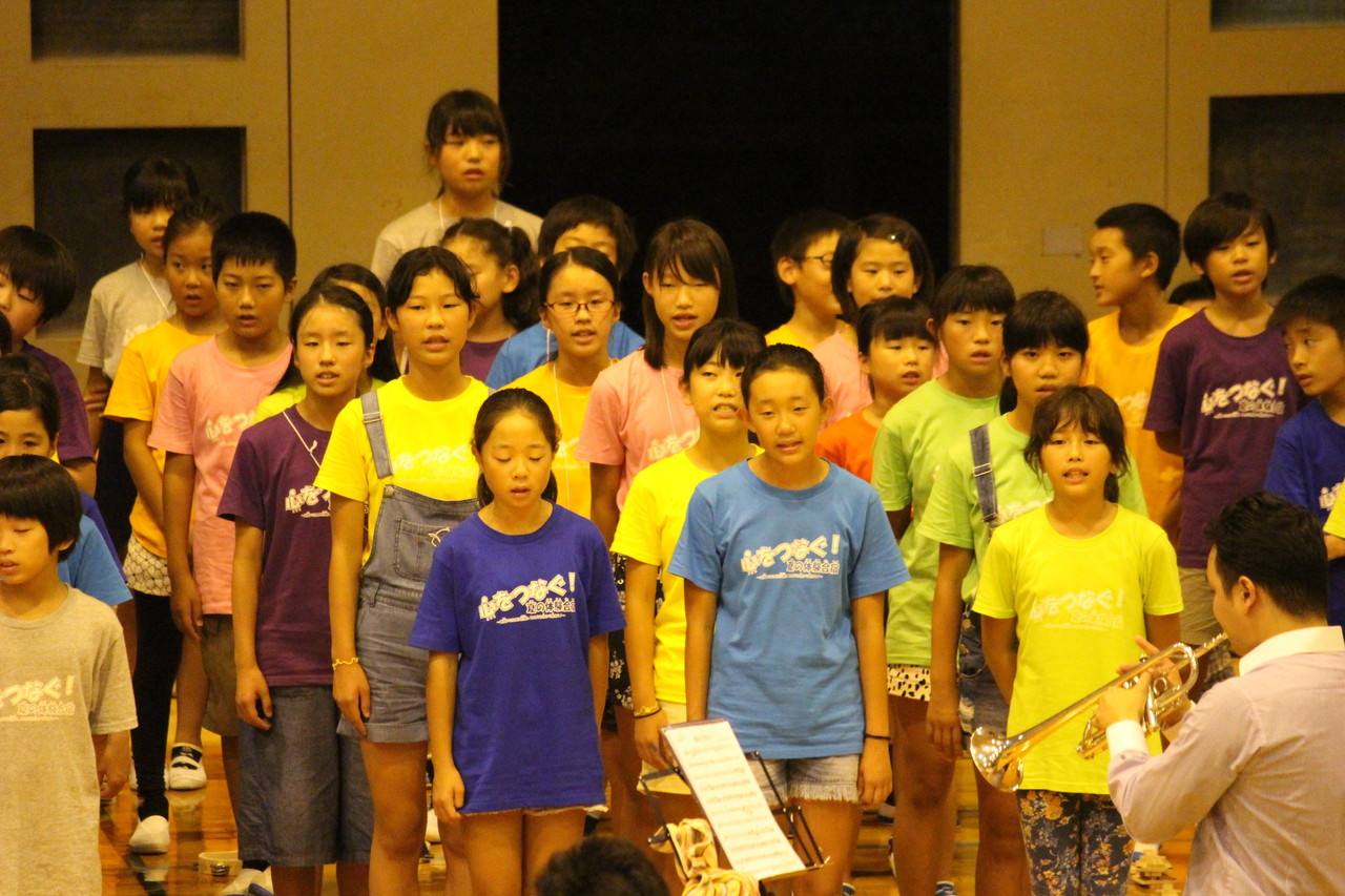 子供たちがREALNOTESの皆さんと一緒にセッションしました。今日1日音楽に触れ、楽しく取り組んできました。気持ちを一つにしないと完成しない演奏を通して、100人の一体感を感じました。