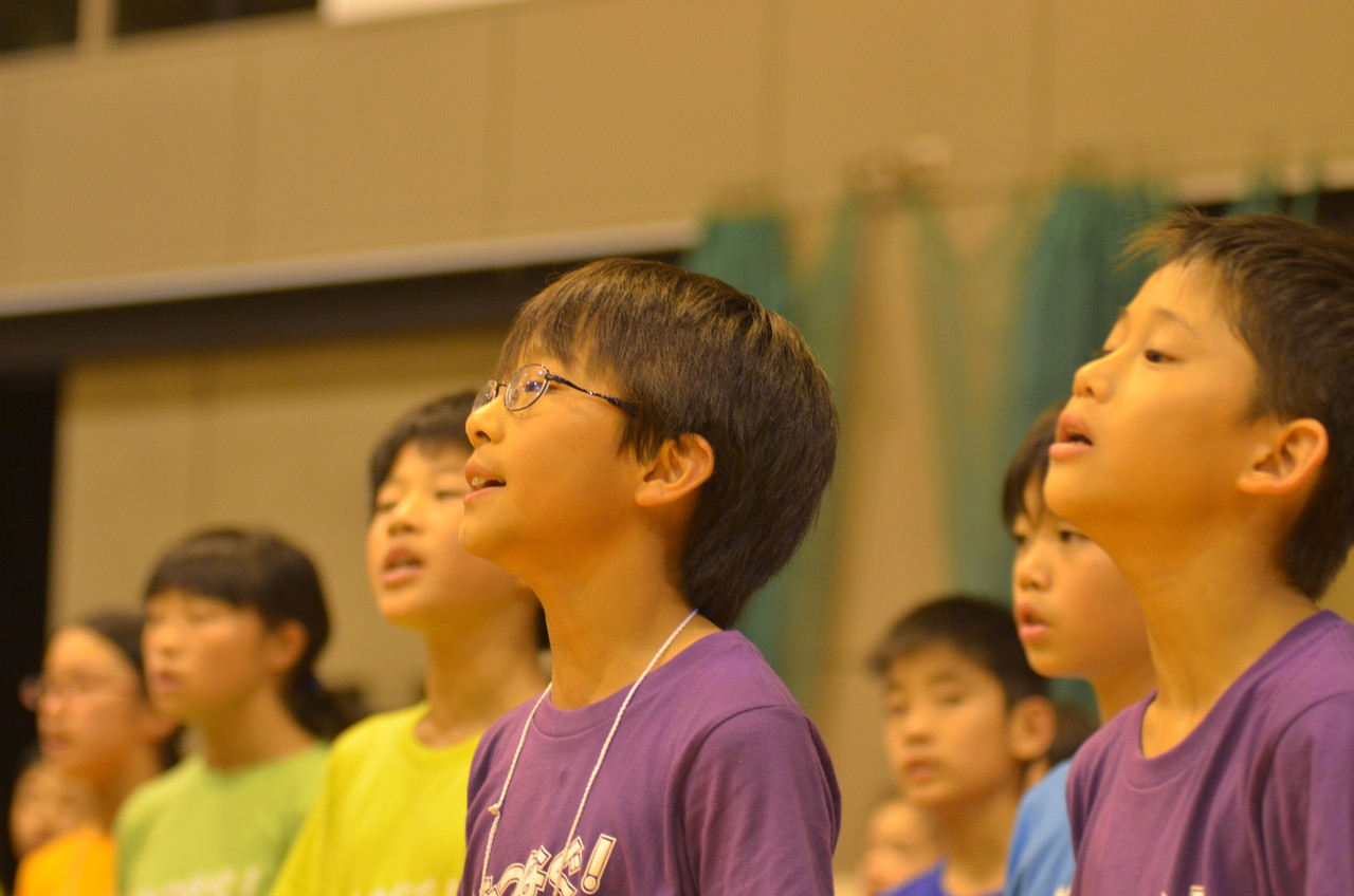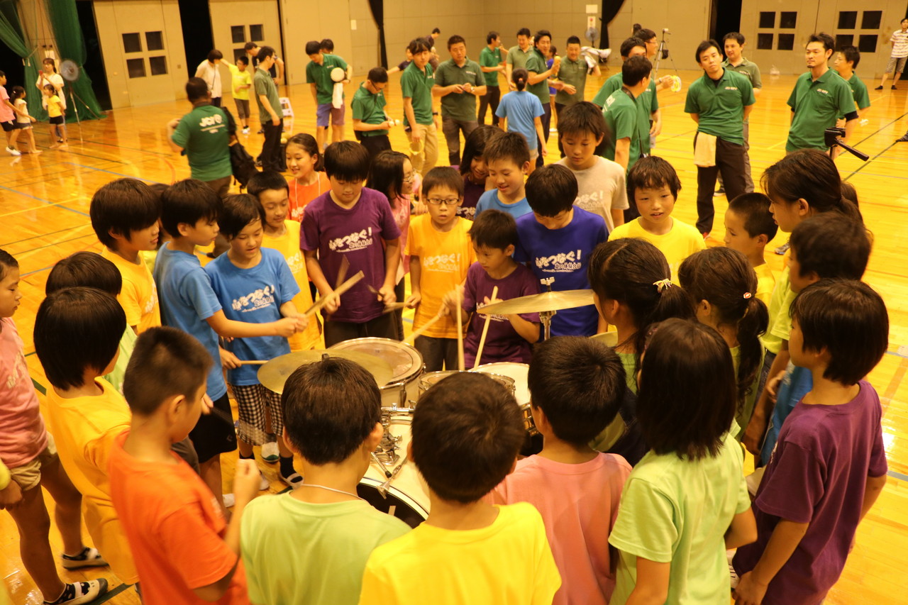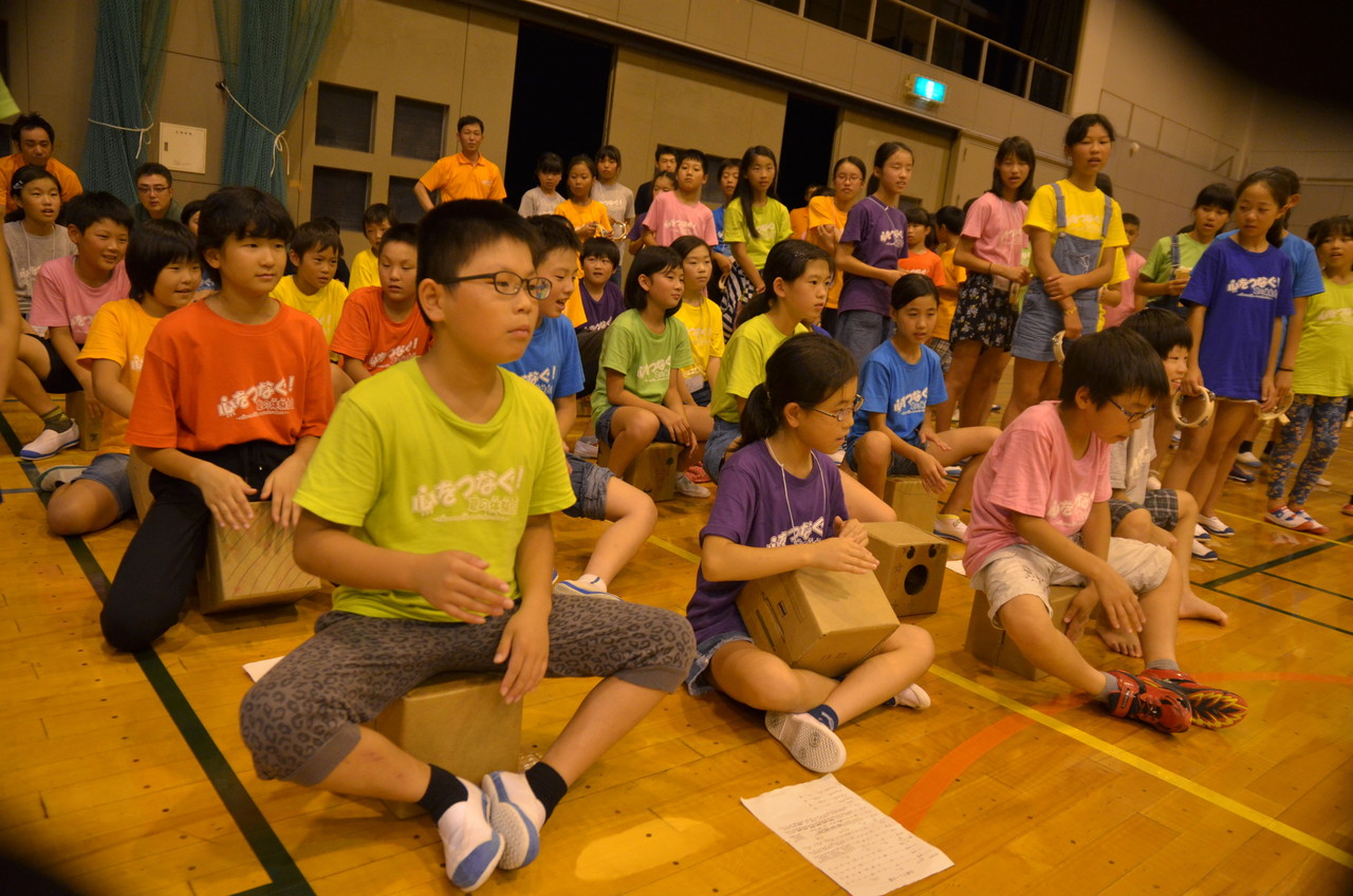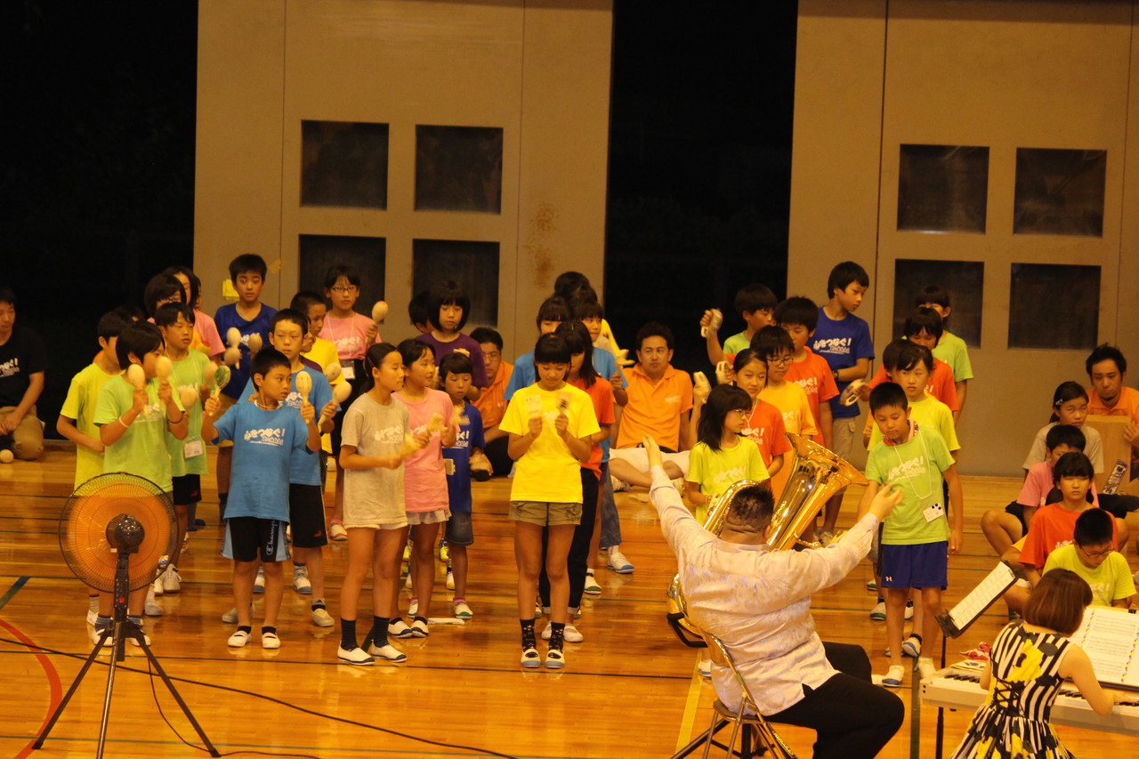 夜のセッションの発表に向け、プロの演奏集団であります、REALNOTESの皆さんに教えて頂き、みんなで歌やセッションの練習しました。最初は子供たちは自信も無く消極的でしたが、最後は一体感あるセッションとなりました。