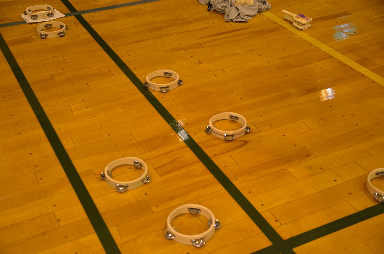 そして、音楽のセッションで使う楽器を作りました。マラカス、カホン、タンバリン、鳴子です。