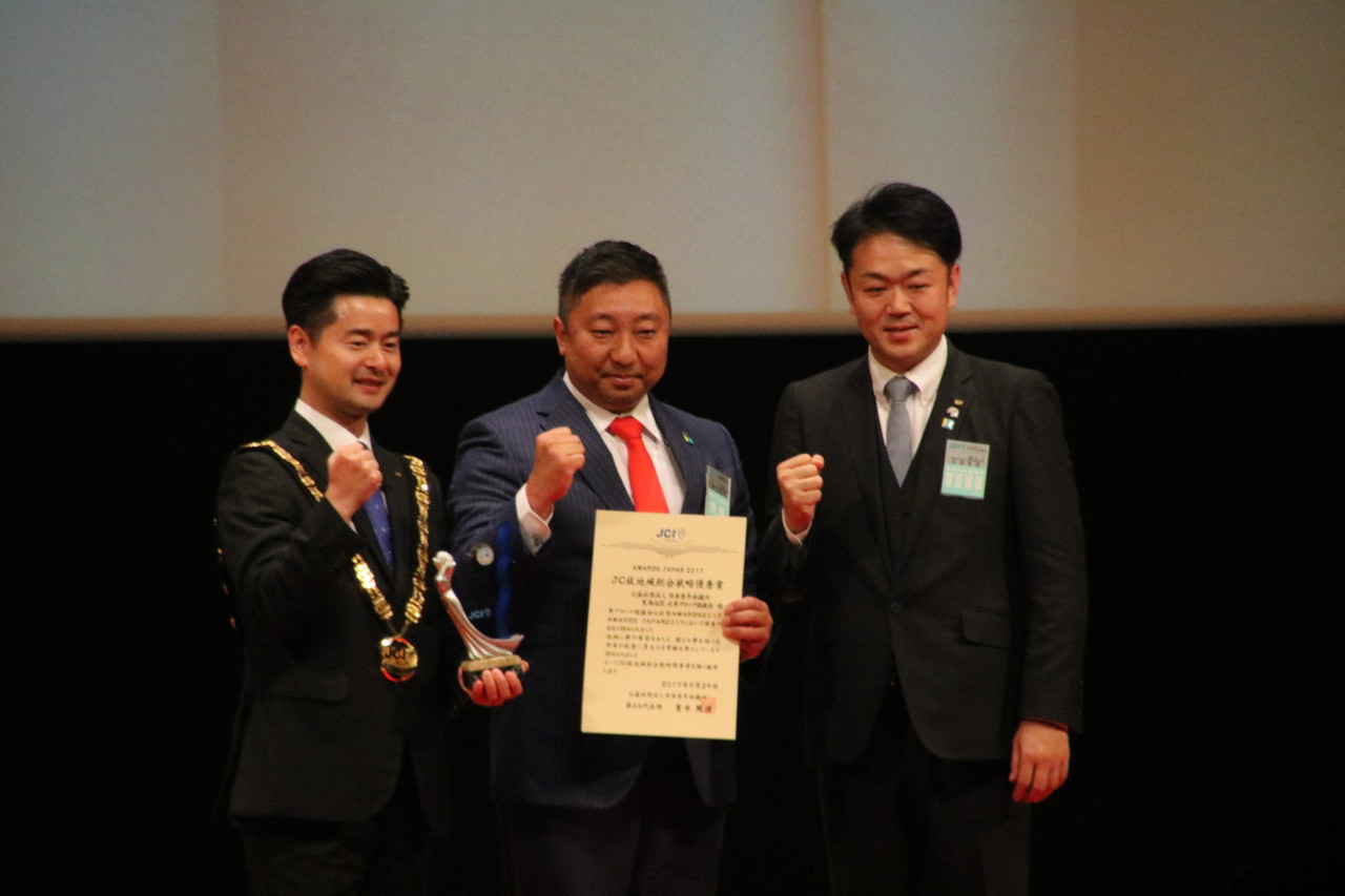 2017年9月29日には総会が行われた後、全国の青年会議所がまちづくり・ひとづくりのために開催した事業を表彰する「政策AWARDS JAPAN 2017」表彰式が行われました。岐阜ブロック協議会が地域総合戦略の一部として、本年度実施致しました「名岐道路早期実現のための署名活動」や「国民討議会」が評価され「JC版地域総合戦略優秀賞」を受賞しました。