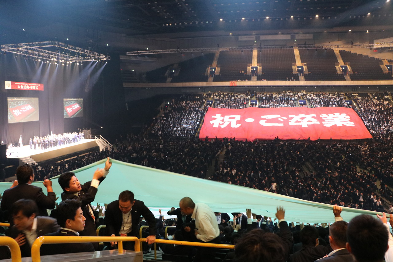 さいたまスーパーアリーナ、メインアリーナにて大会式典が開催されました。「式典の部」では本年度の会頭から次年度の会頭へ連綿と受け継がれてきたプレジデンシャルリースが受け渡されました。卒業式の部では岐阜JCメンバーを含む本年度卒業予定者が数多く参加し、大きな会場の中、拍手で送り出されました。
