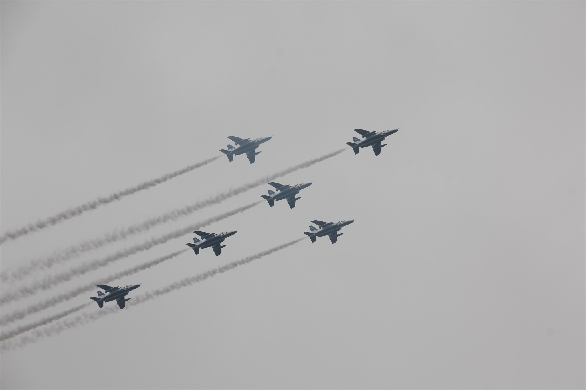 オープニングに合わせて、宮城県松島基地の第4航空団に所属する「第11飛行隊」通称「ブルーインパルス」による編隊飛行が披露されました。 |