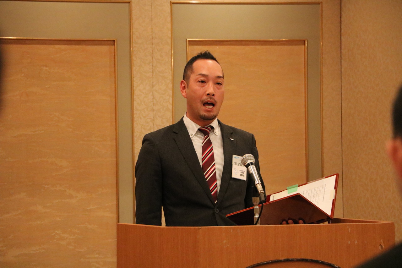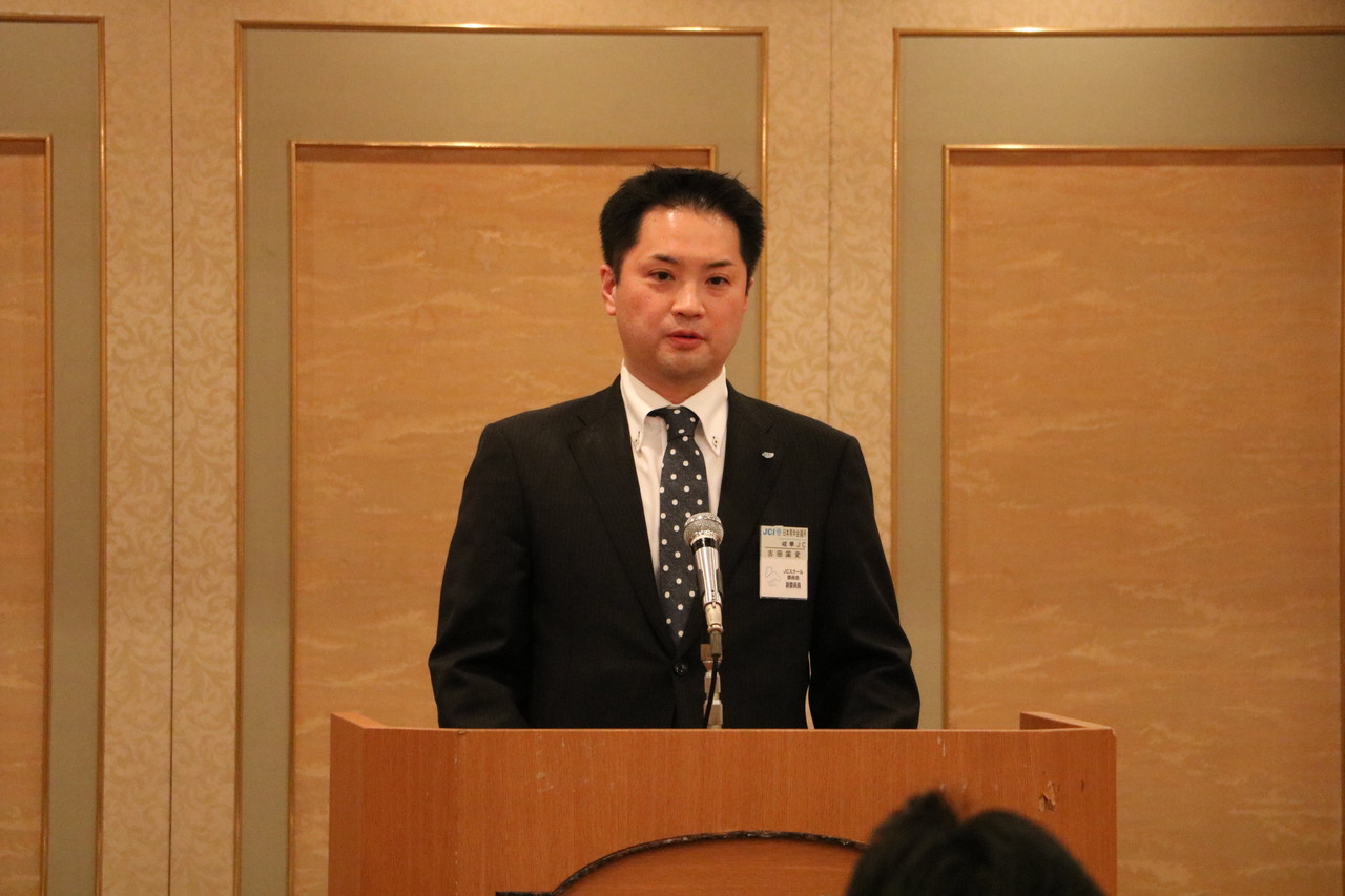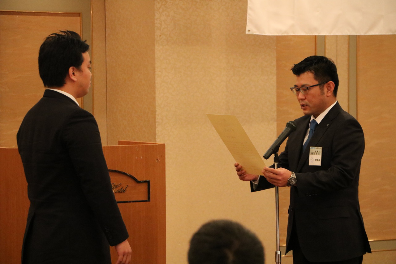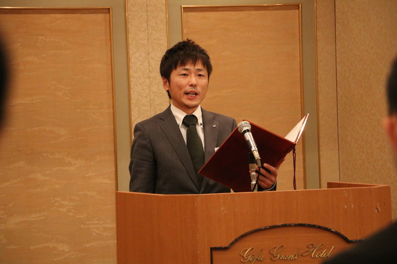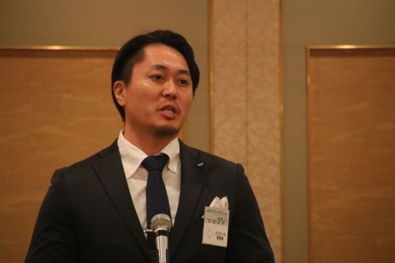 JCスクール委員長 石坂将司君から「一年間、楽しかったこと、苦しかったこと色々ありました。その経験が今後の皆さんに活かされていきます。この同期の仲間と共に過ごした一年間に自信をもち、ぎふのまちのために貢献していってください。」と話しました。