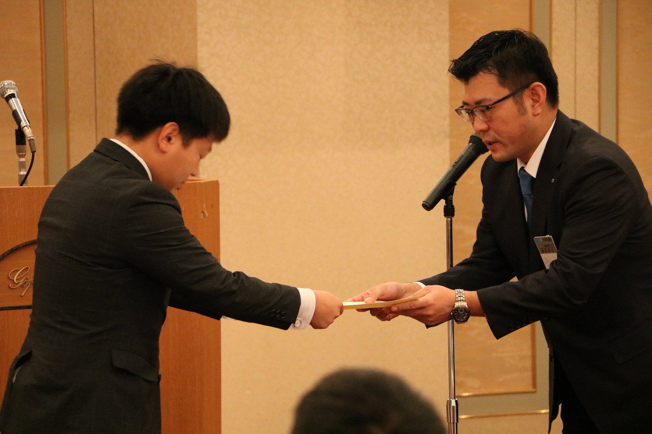 壇上では、理事長 篠田修司君がスクール生一人ひとりに終了証書を授与しました。その後のスピーチでは、一年間の振り返りと今後どのように活動していくかを話しました。