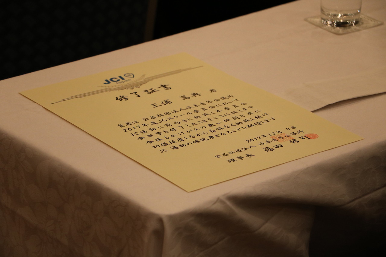 2017年12月9日(土)岐阜グランドホテル 孔雀の間にて(公社)岐阜青年会議所の2017年度JCスクール閉校式が行われました。