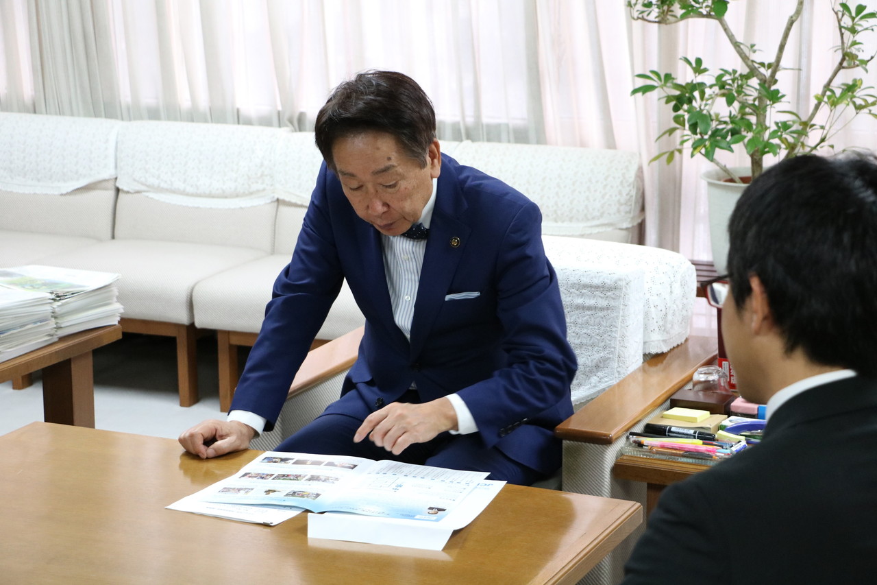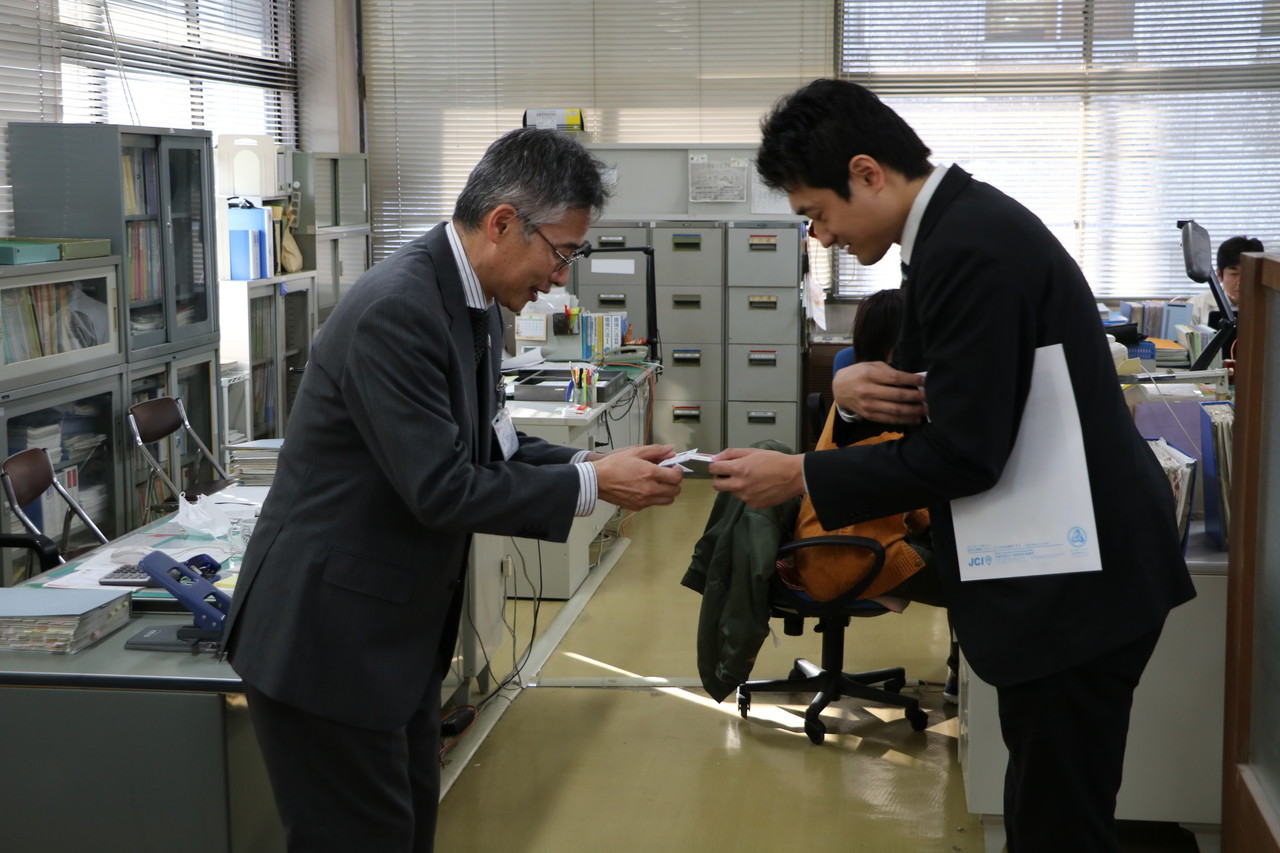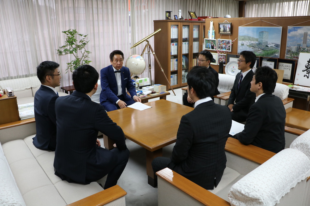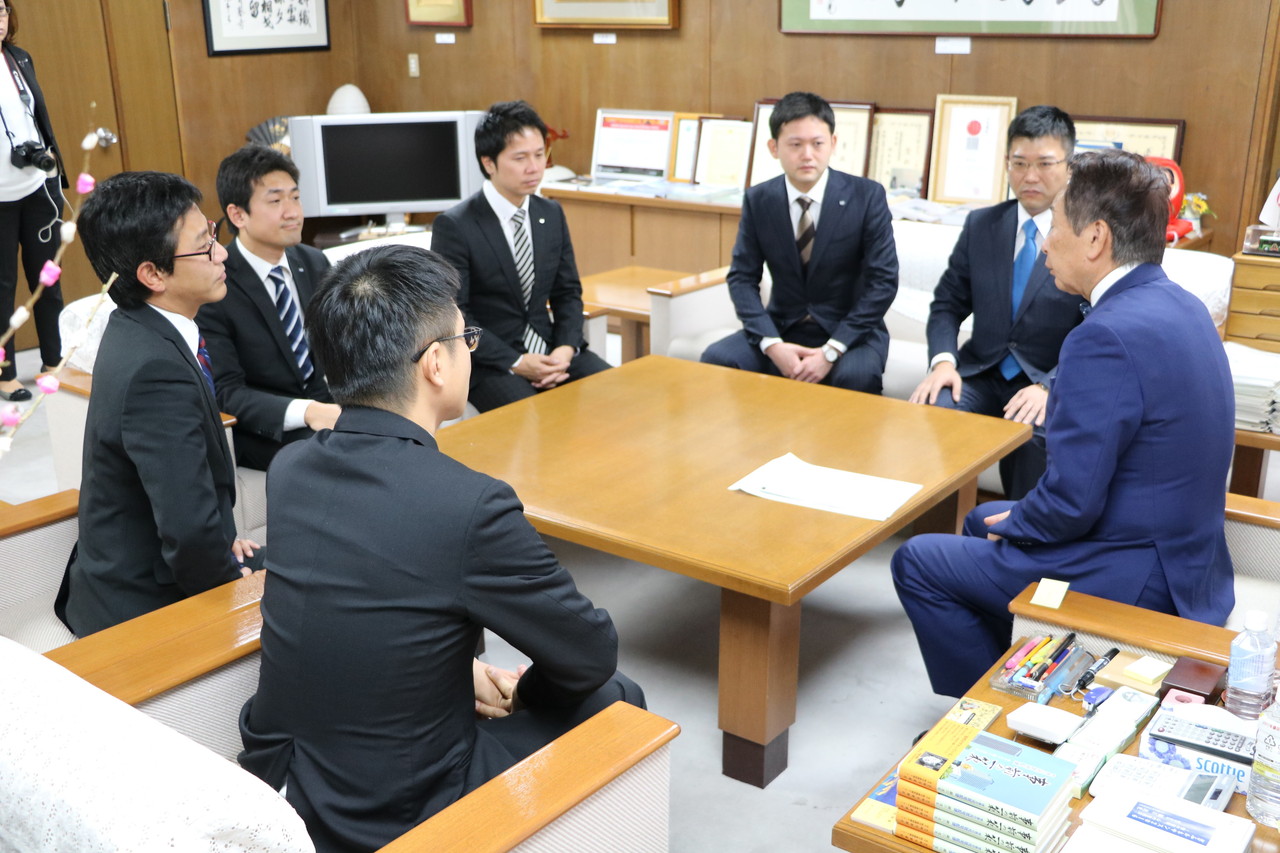 細江市長へのご挨拶では、公益社団法人岐阜青年会議所が毎年発行する「TO THE FUTURE」をお渡し、2017年度のスローガンや活動方針、事業計画をお伝えしました。細江市長からは2017年度の方針や市長としての抱負をお話頂くと共に、「市民が独自性を出し合い共に力を合わせれば、良いまちづくりができる」と述べられ、公益社団法人岐阜青年会議所2017年度スローガンの中の「シンフォニー」という言葉に共感を頂きました。