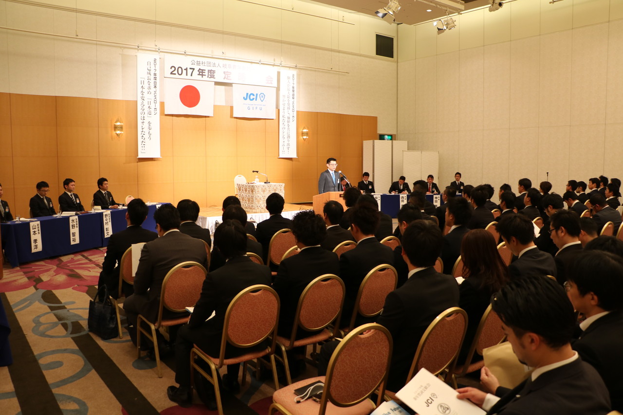 2017年1月18日(水)、岐阜都ホテルボールルームにて、本年度最初の公式事業となる、2017年度定時総会を執り行いました。2016年度の事業報告や収支決算議案が上程され、その決算内容を受け2017年度の収支予算修正議案が上程されました。各議案共メンバーの慎重審議を経て、全員の賛成をもって可決承認されました。