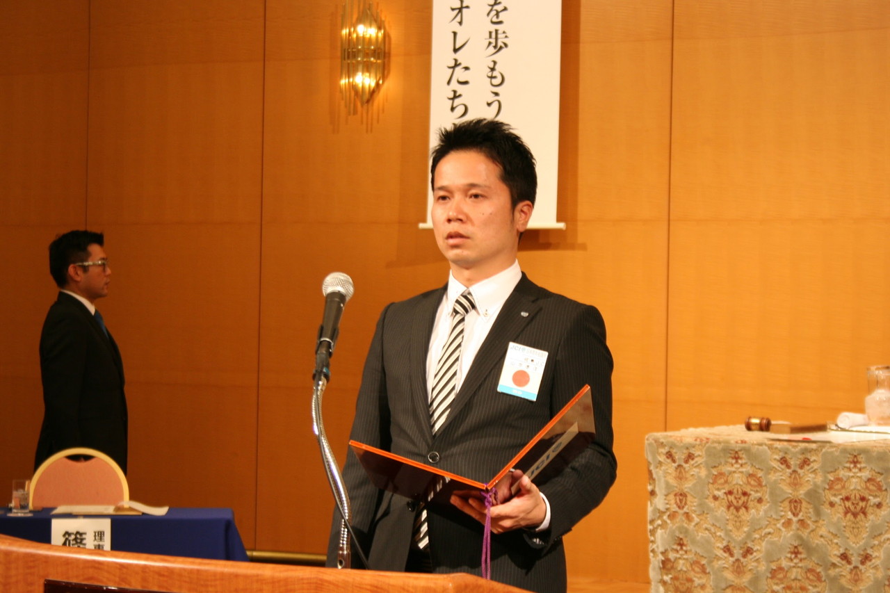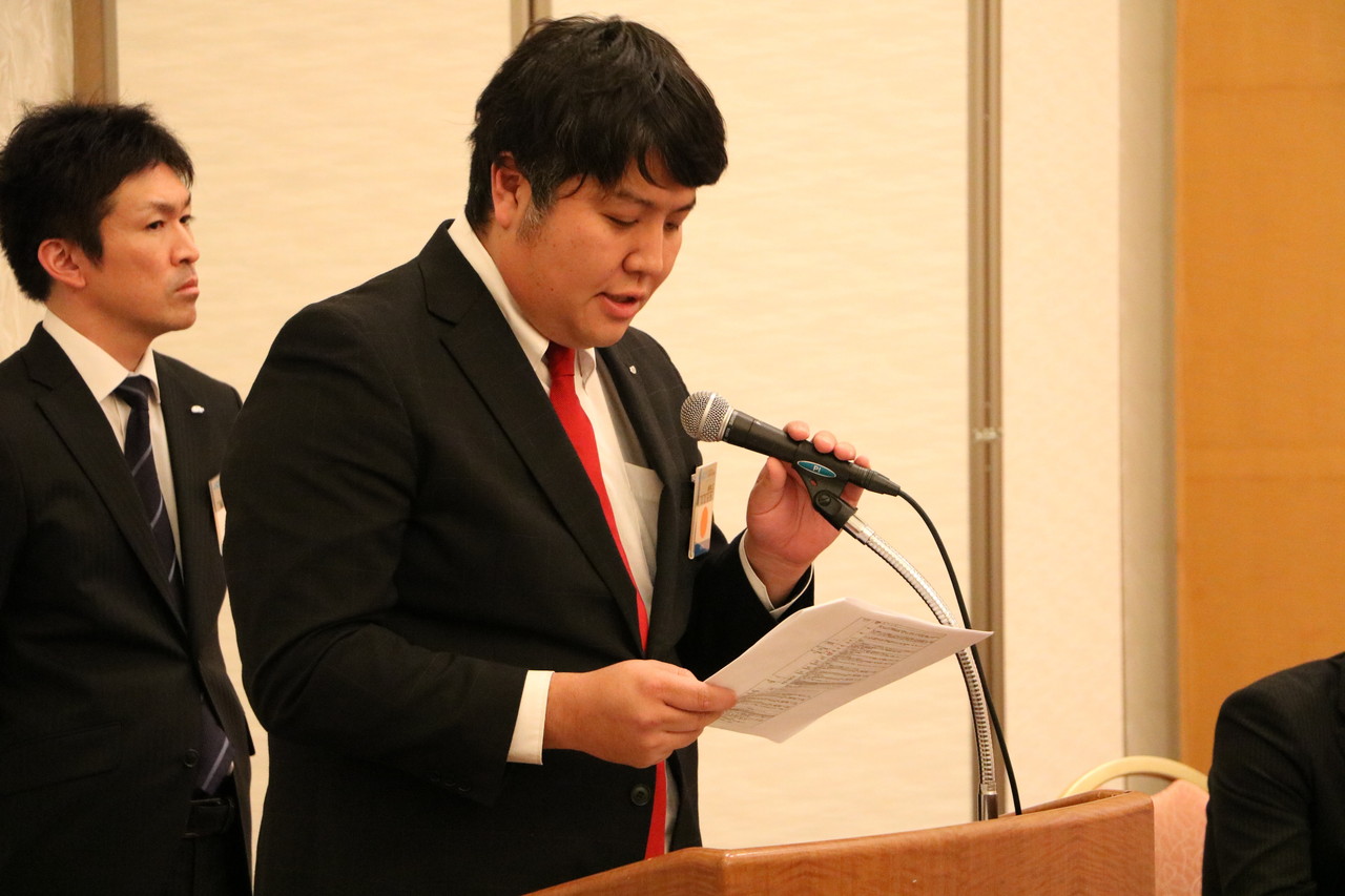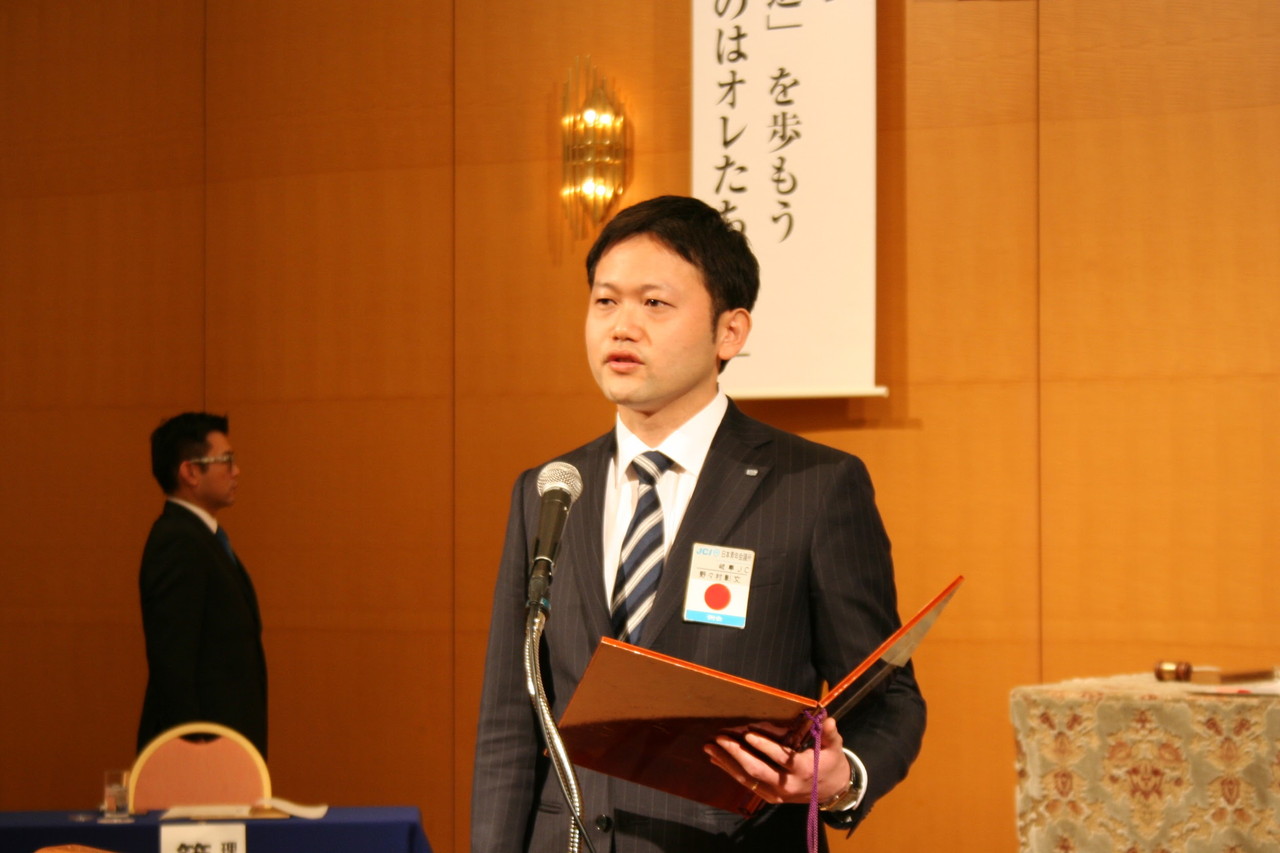 出向者を代表して、(公社)日本青年会議所 稼ぐ地域推進委員会に副委員長として出向する、市川 智己君より挨拶がありました。