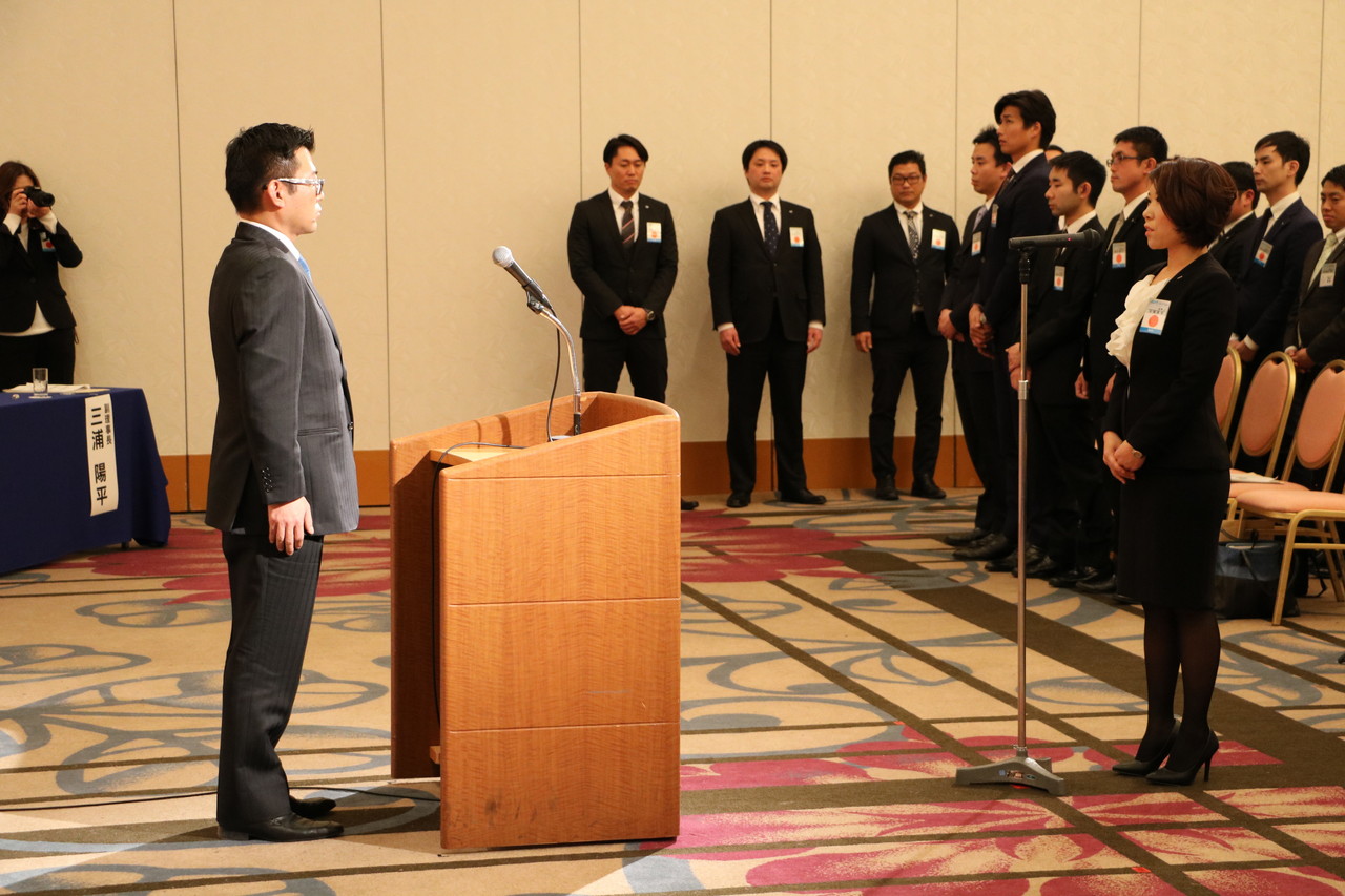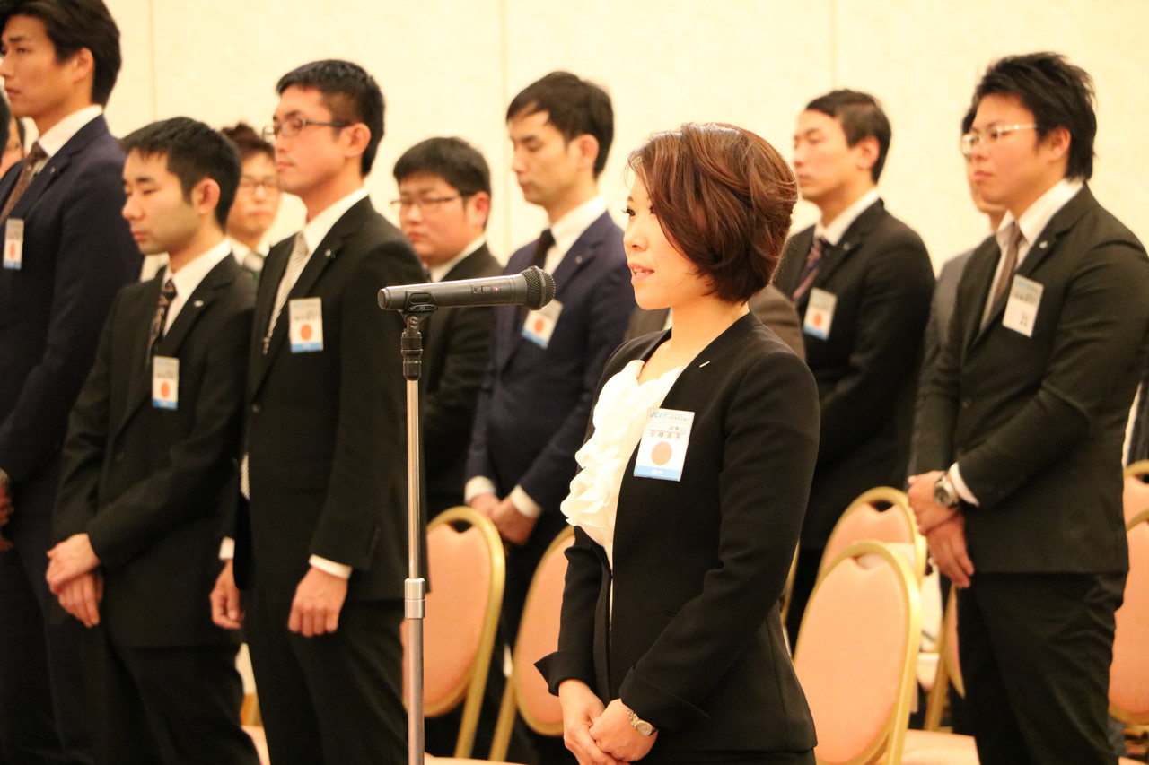 新入会員を代表して、安藤 真実君より「後ろを向かず、ぎふのまちのために挑戦していきます。」と、誓いの言葉が述べられました。