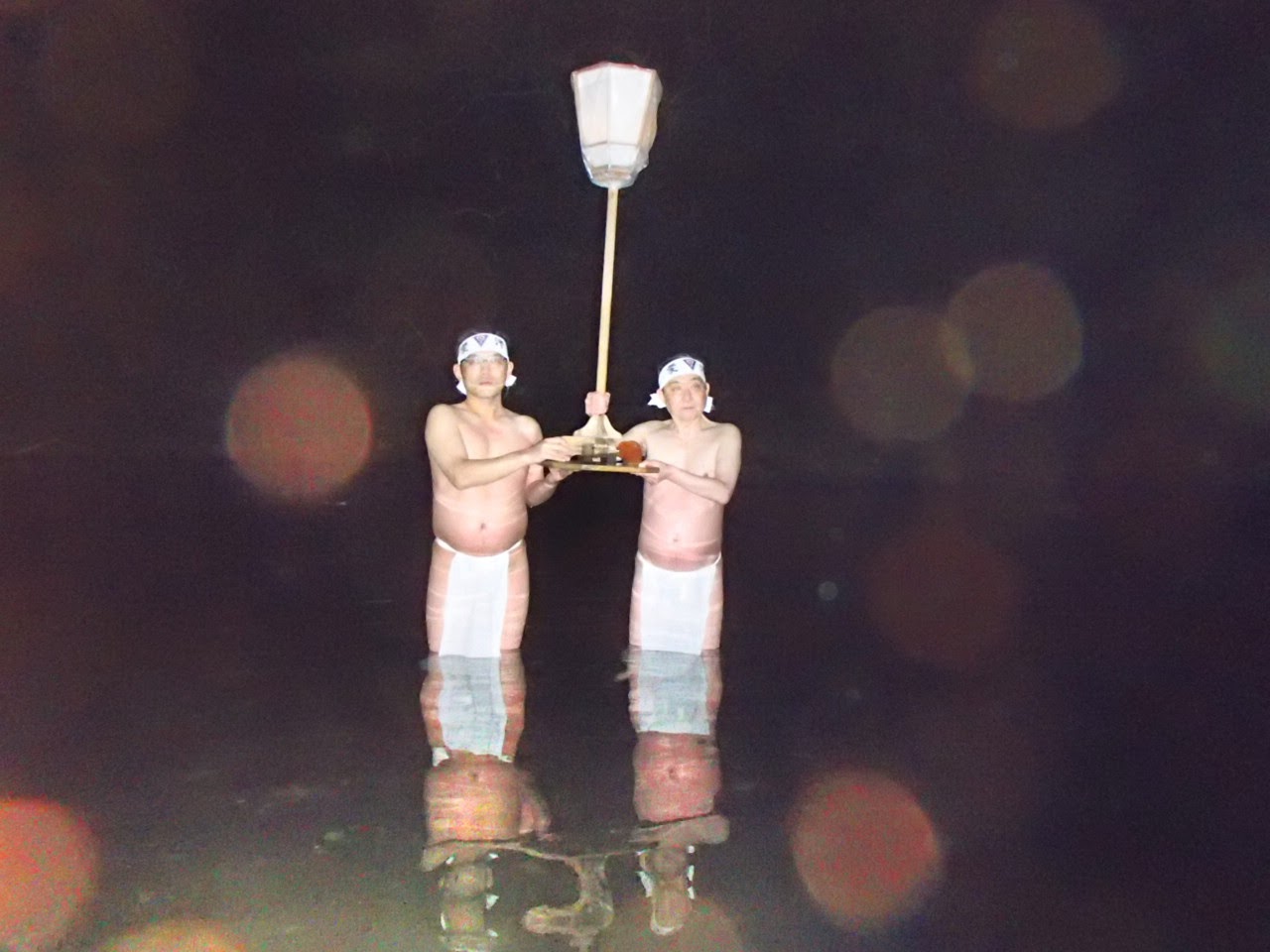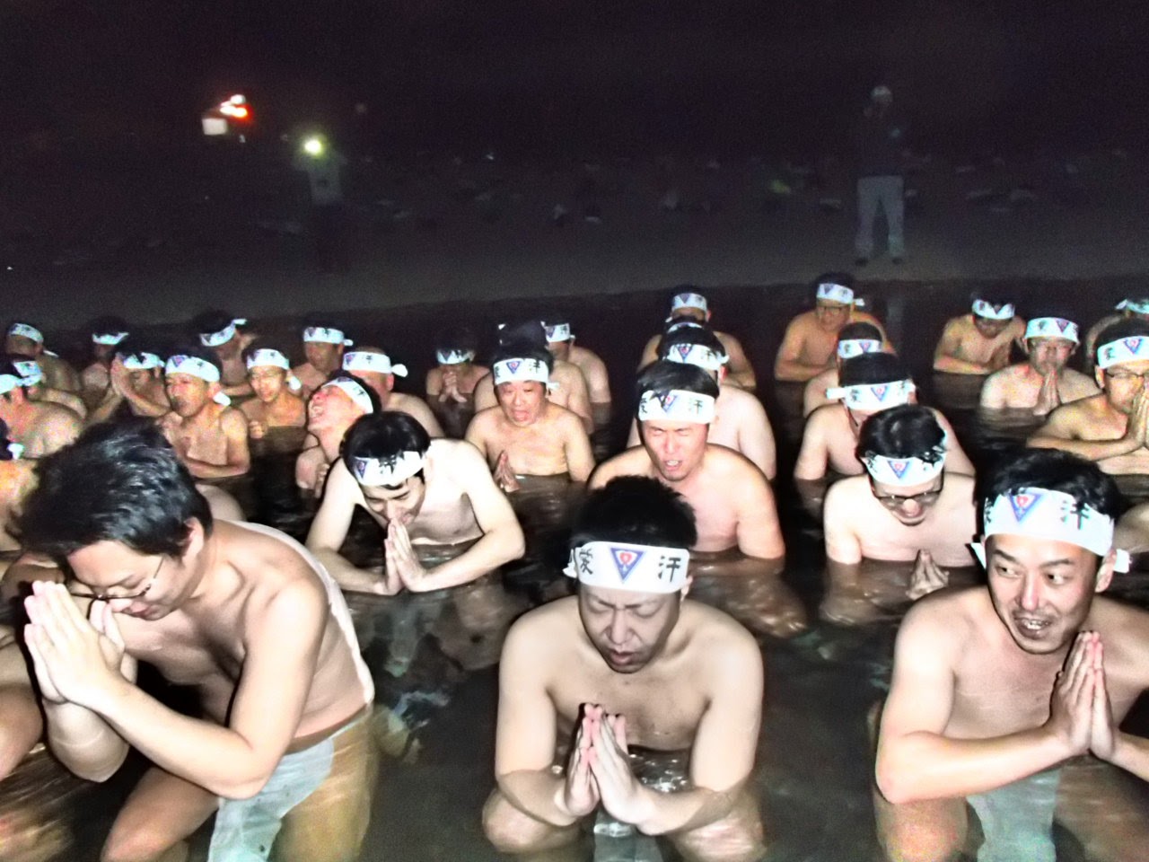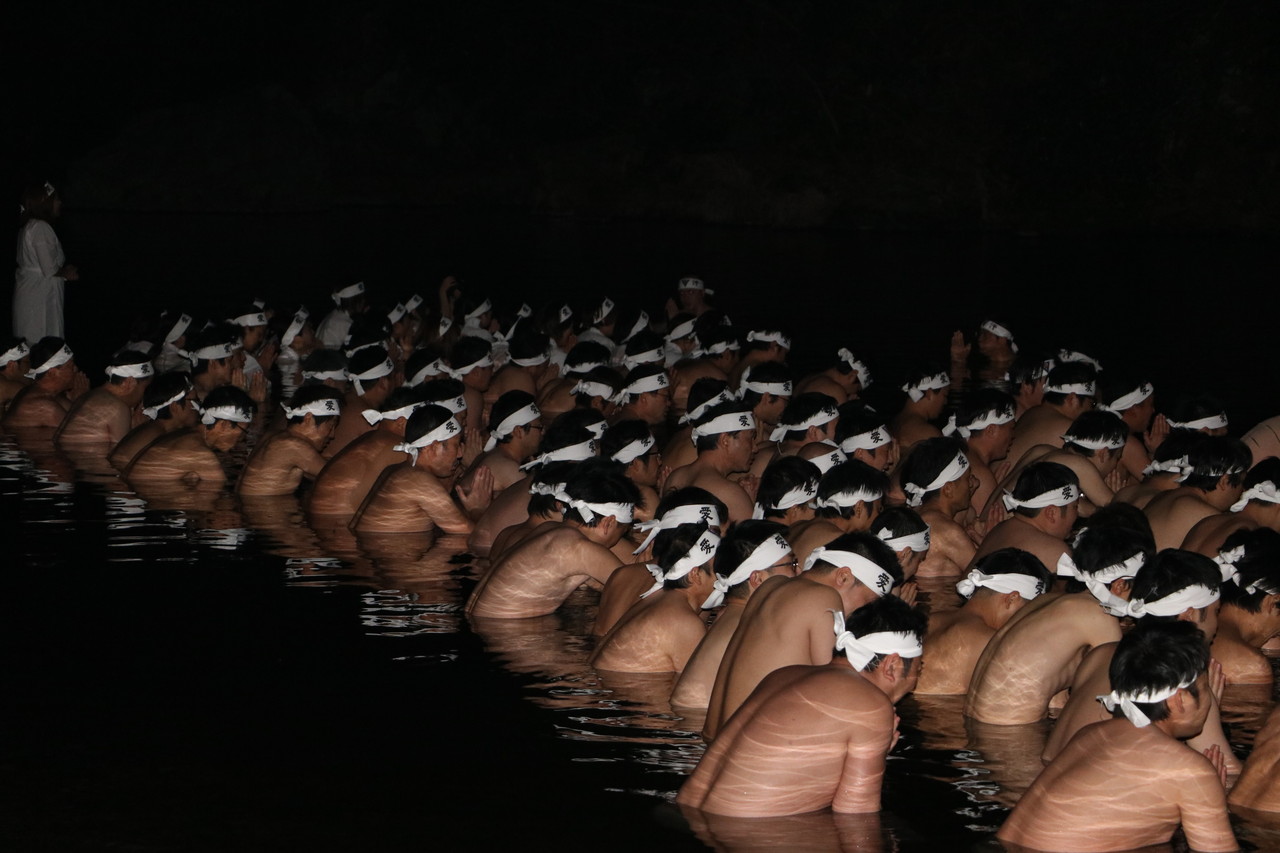 水行の様子です。五十鈴川の冷たい水につかり身を清めました。