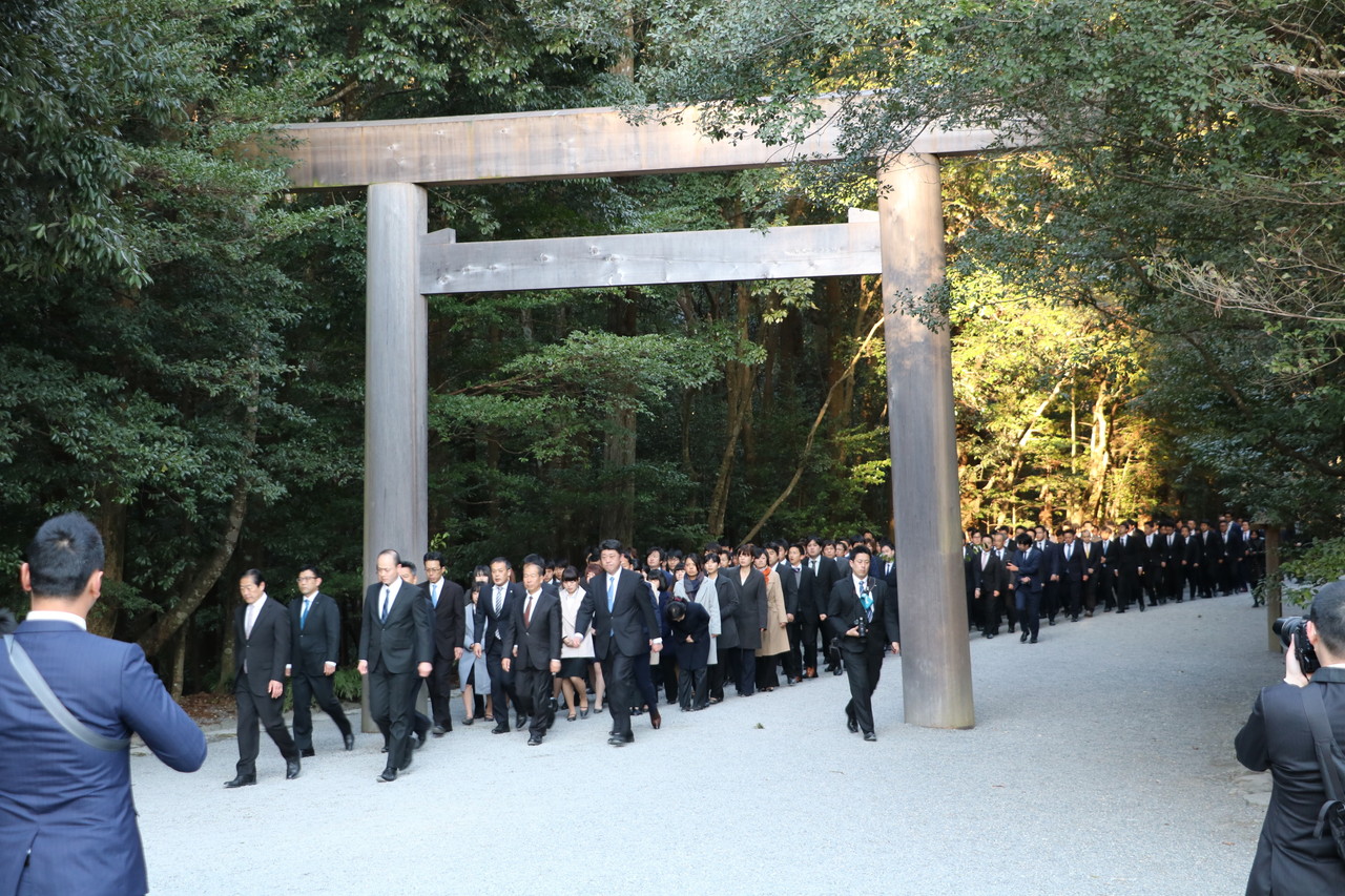 2日目の朝には伊勢神宮内宮へ研修参加者全員で参拝させて頂きました。