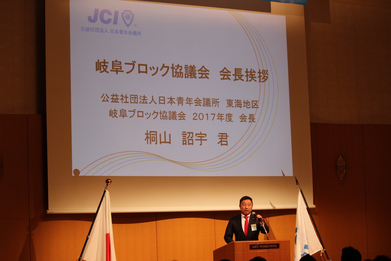公益社団法人 日本青年会議所 東海地区 岐阜ブロック公式訪問では、岐阜ブロック協議会 桐山会長が、岐阜ブロック協議会の存在意義について語られました。また、各LOMの理事長が今後の活動方針や意気込みを発表されました。
