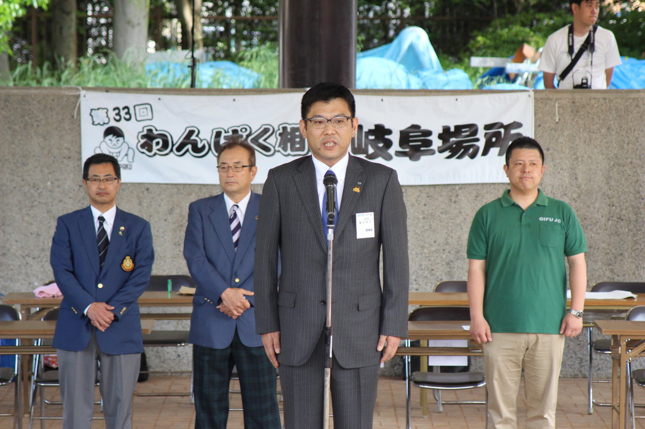 公益社団法人岐阜青年会議所 理事長 篠田修司君より「怪我には気をつけて一生懸命取り組んで欲しいです。相撲を通じて相手や周りの人を尊ぶ心を学んで欲しいです。」と挨拶がありました。