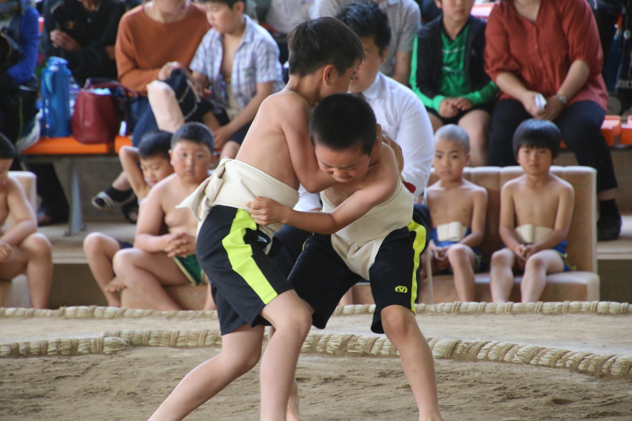 快晴のなか、岐阜市近郊の130名の小学生が参加しました。男子は1~6年の学年別、女子は1・2年、3・4年、5・6年に分かれて熱戦が繰り広げられました。白熱した取り組みに応援に来た家族は、大きな声で声援を送っており、取り組み後は「尊びの書」に記入し、相手を讃え、周りの人に感謝する気持ちの大切さを学びました。尚、本大会での男子4・5・6年生の部の優勝者は7月30日(日)にて、両国国技館で開かれる「第33回わんぱく相撲全国大会」に出場します。