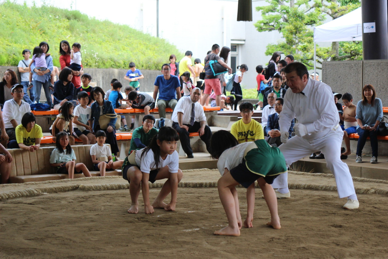 岐阜農林高校の相撲部による取り組みの説明です。相撲の所作から実践して頂きました。