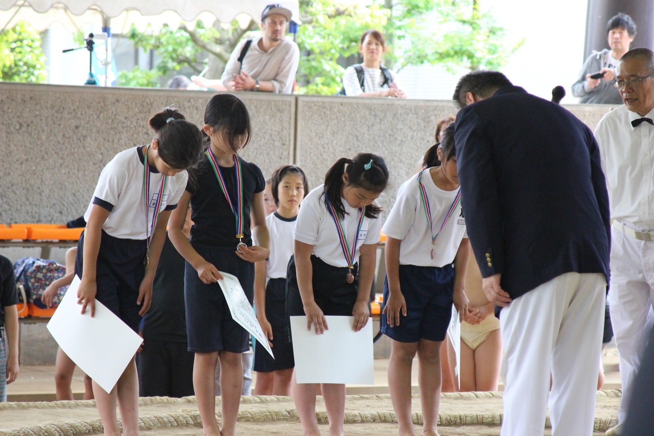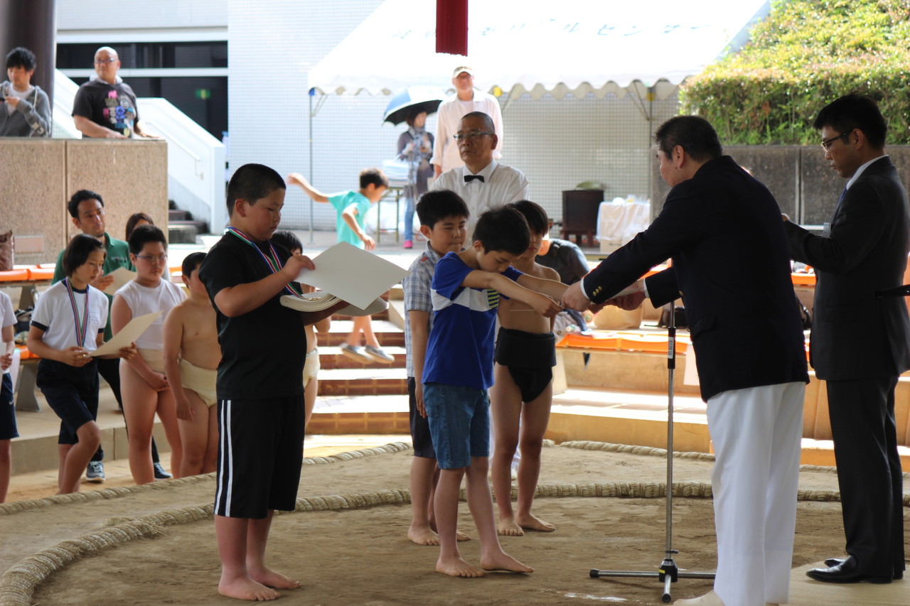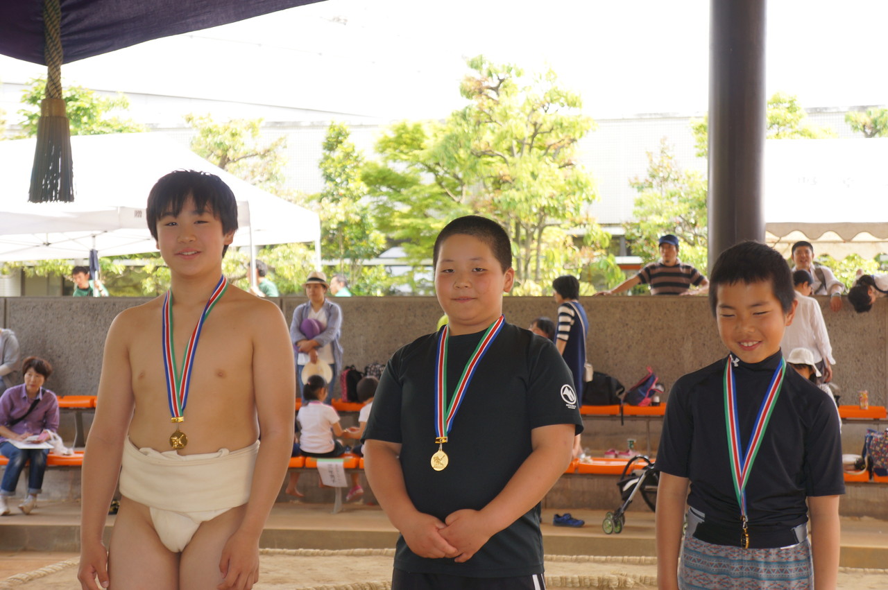 4年生、5年生、6年生の優勝者です。7月の両国国技館で行われる全国大会に参加します。表彰式ではメダルを授与され笑顔で溢れていました。