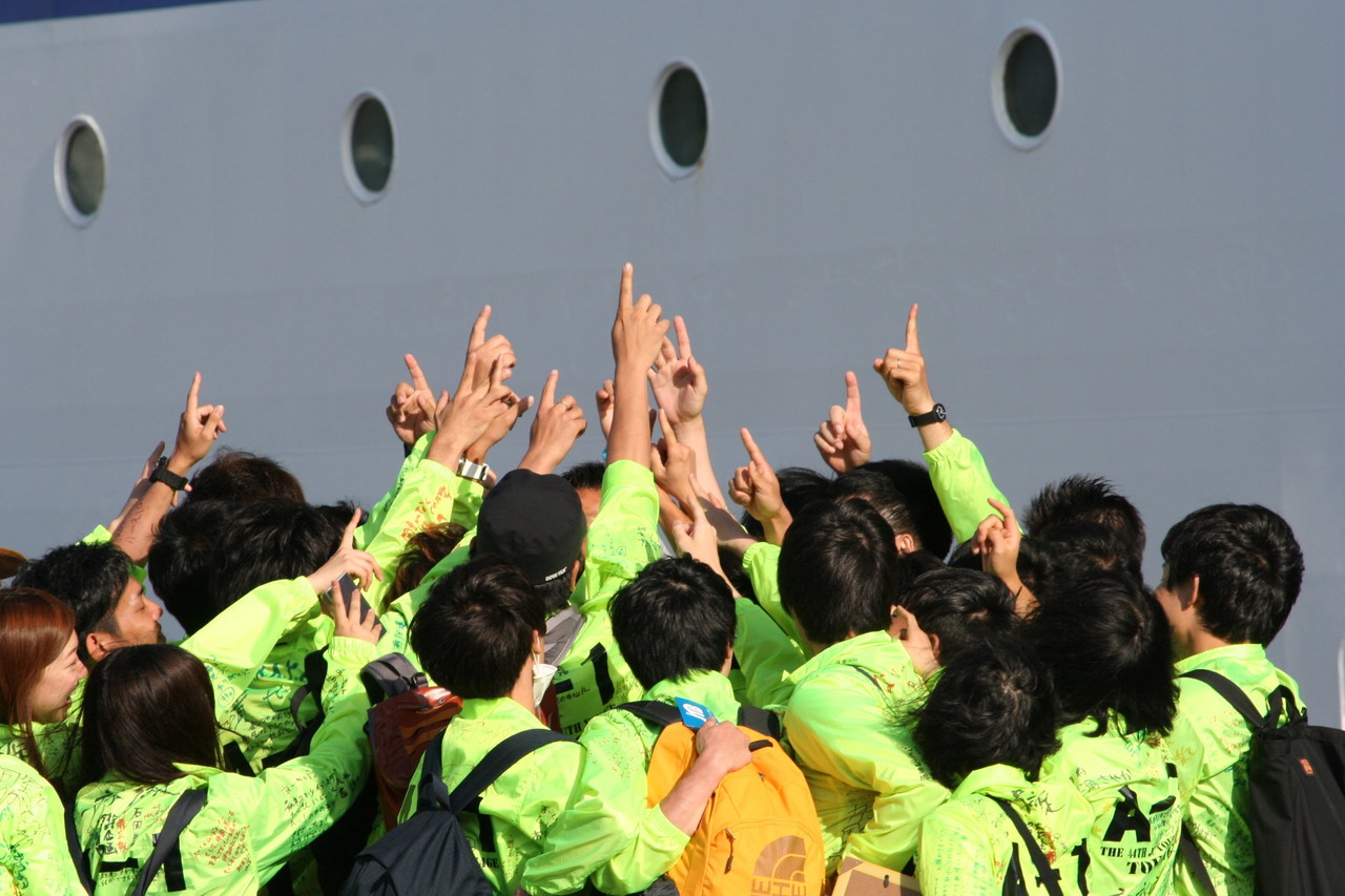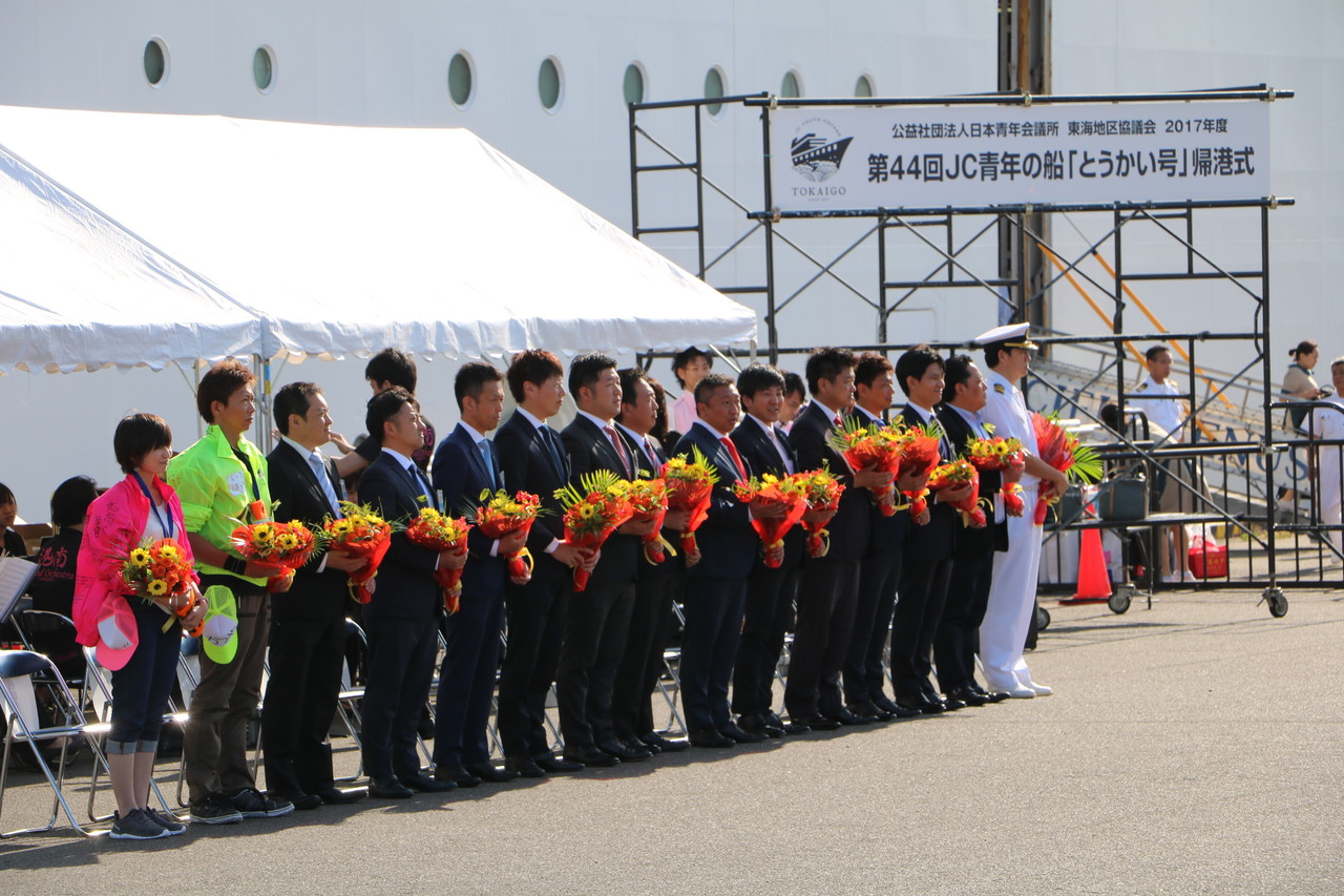 第44回青年の船「とうかい号」が寄港地の上海での研修も含め8日間の洋上研修を終え名古屋港に戻ってきました。乗船者は仲間との別れを惜しみながらも達成感に満ちた顔で下船され、多くのJCメンバーでお出迎えを行いました。乗船者の皆さんお疲れ様でした。