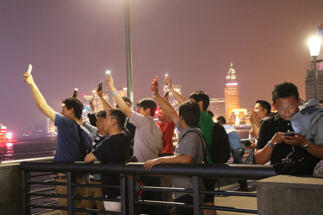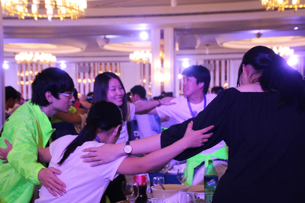 乗船者全員が手を繋ぎ、中国語の歌を合唱しました。