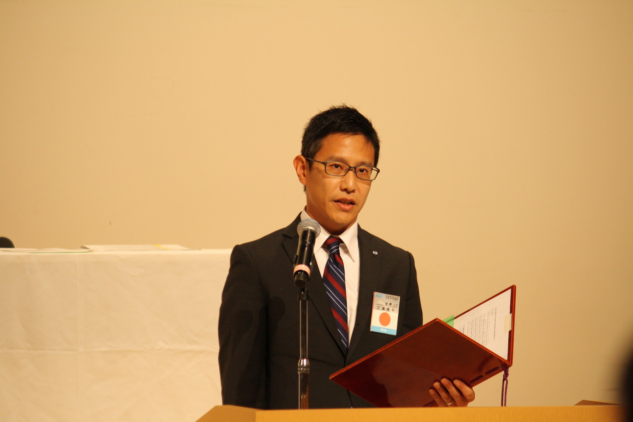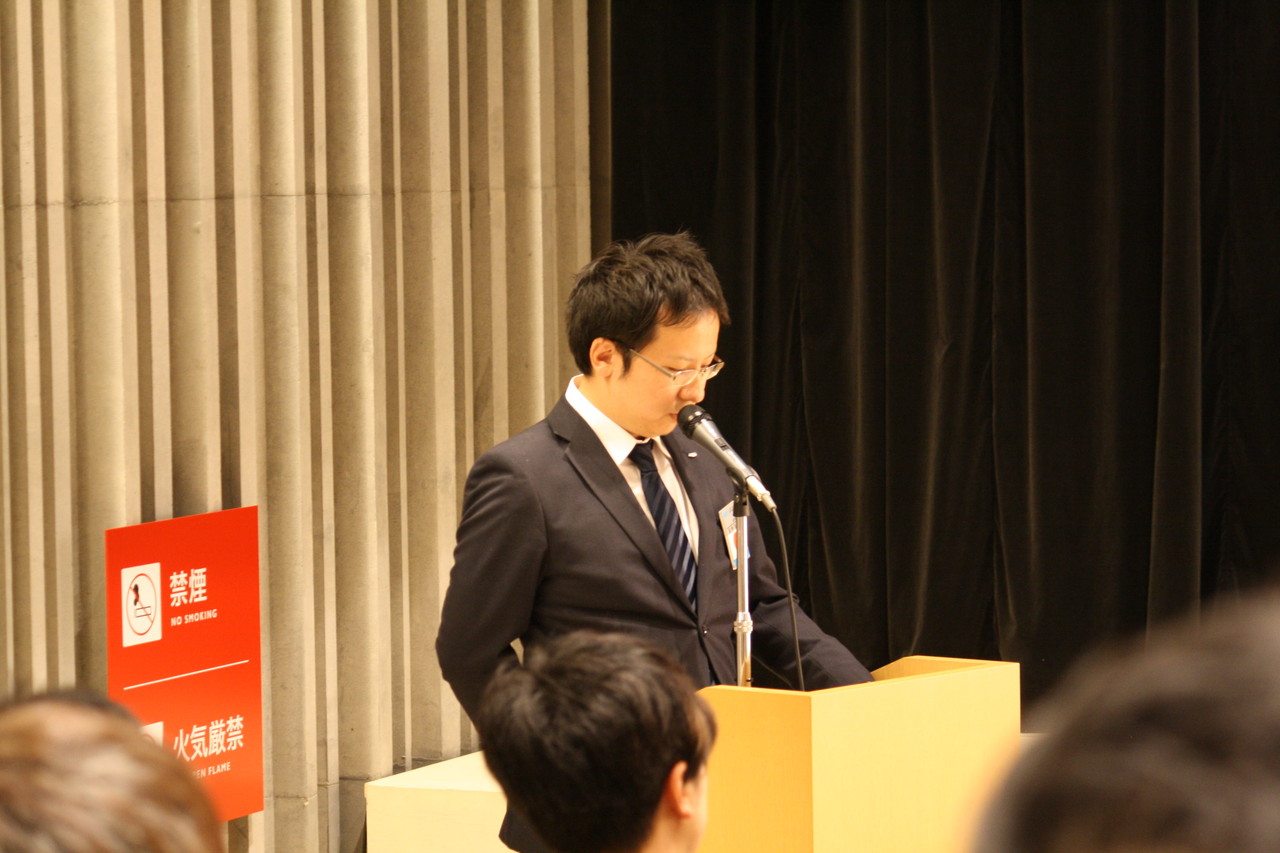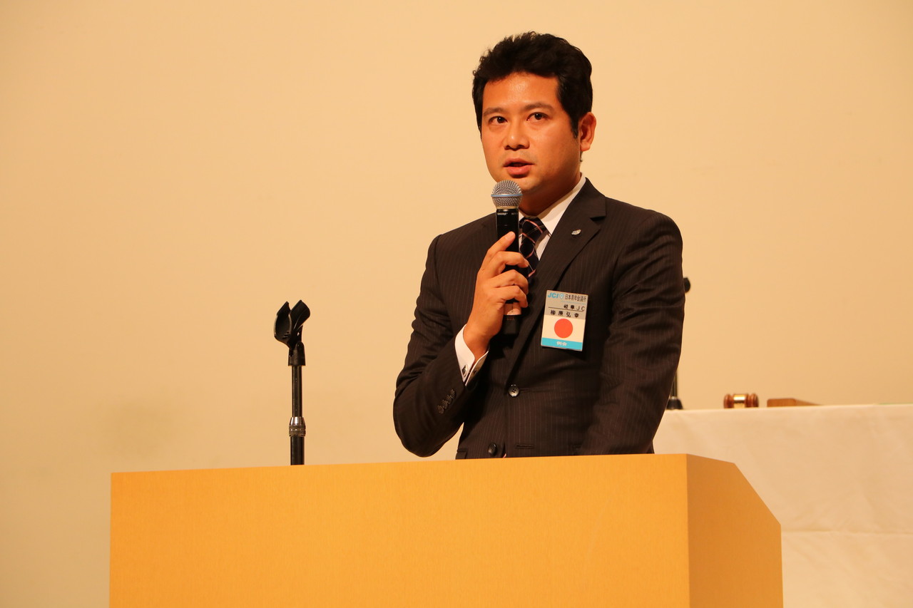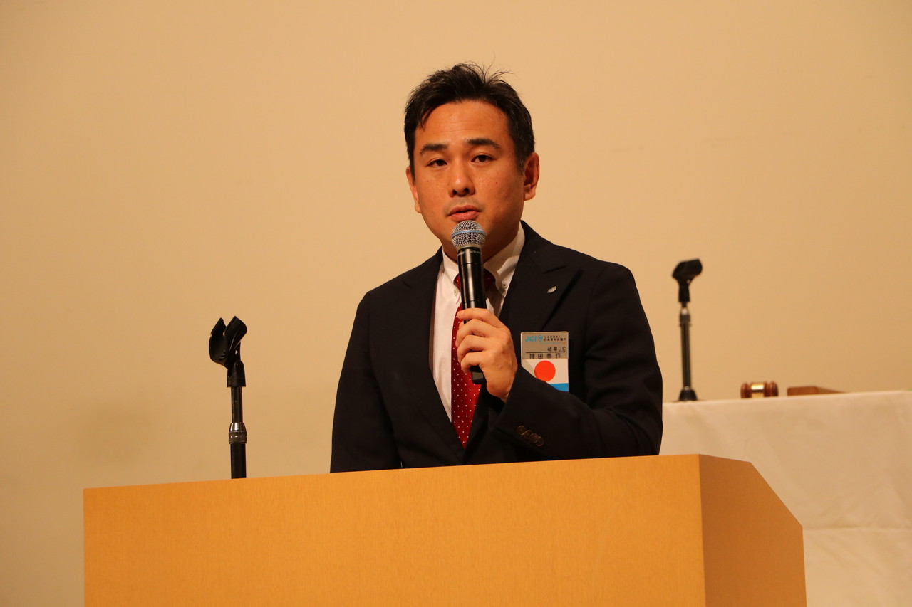 次年度の役員メンバーが壇上に上がり、理事長候補者の野々村彰文君が2018年度への思いを掲げました。予定者全員でメンバーに対し次年度を背負う覚悟をもって「よろしくお願い致します。」と声を合わせました。