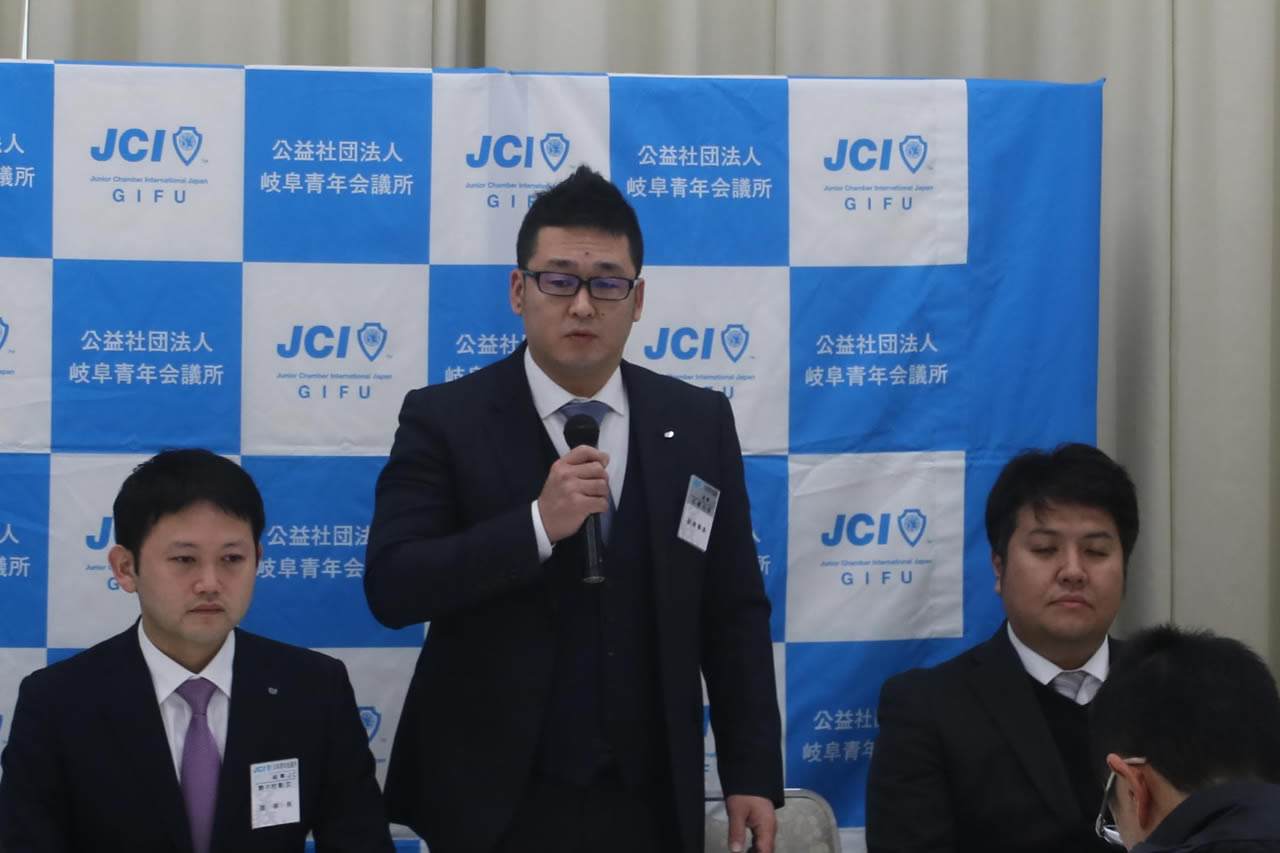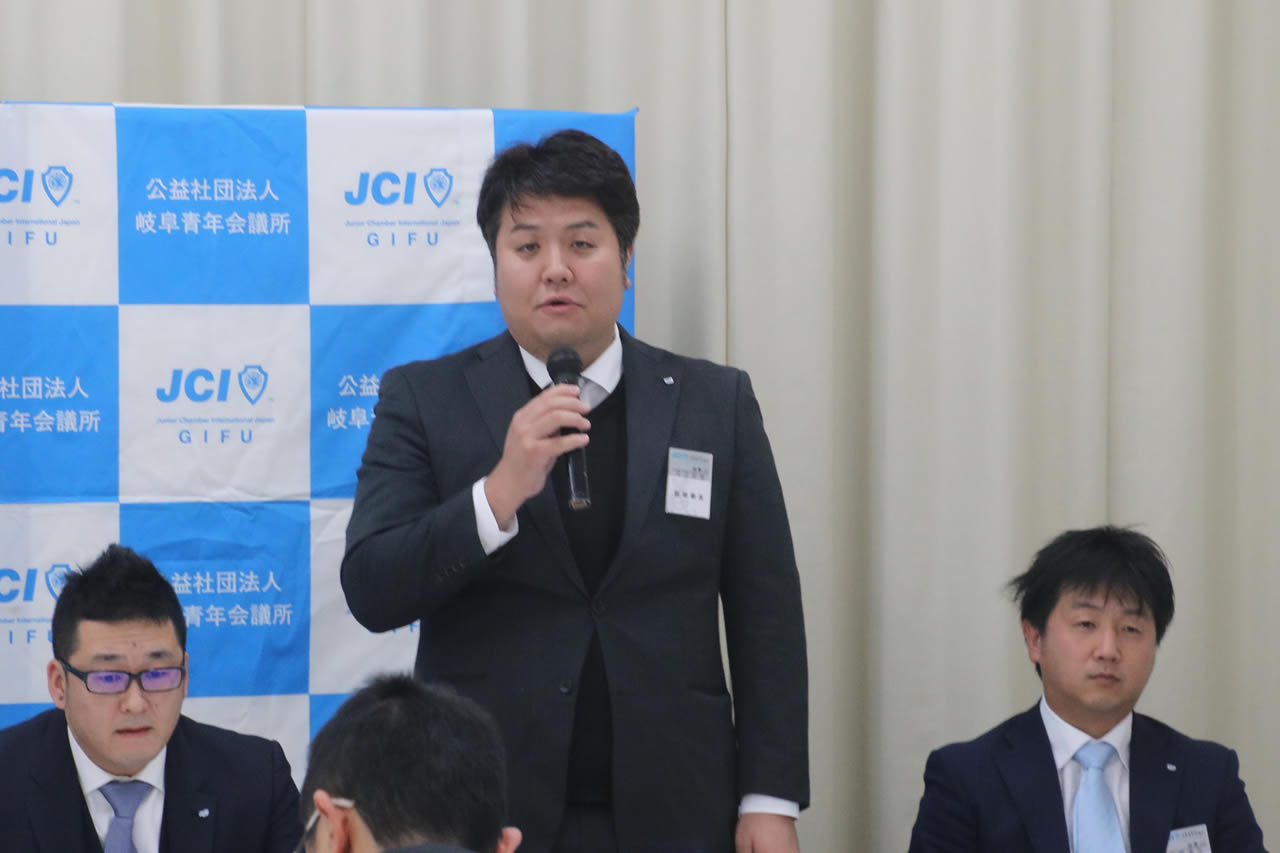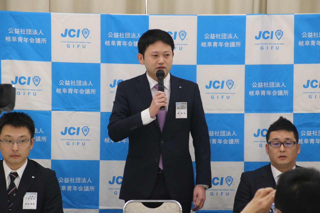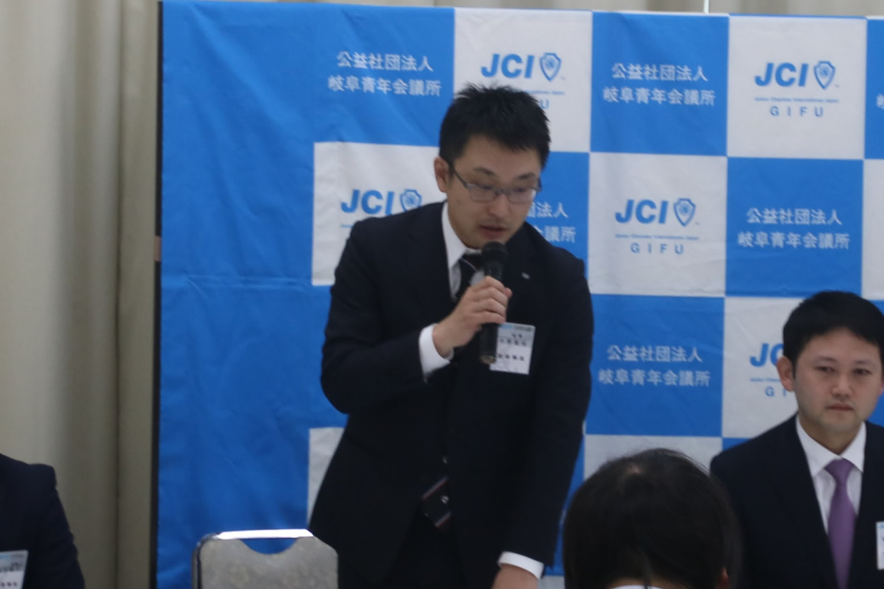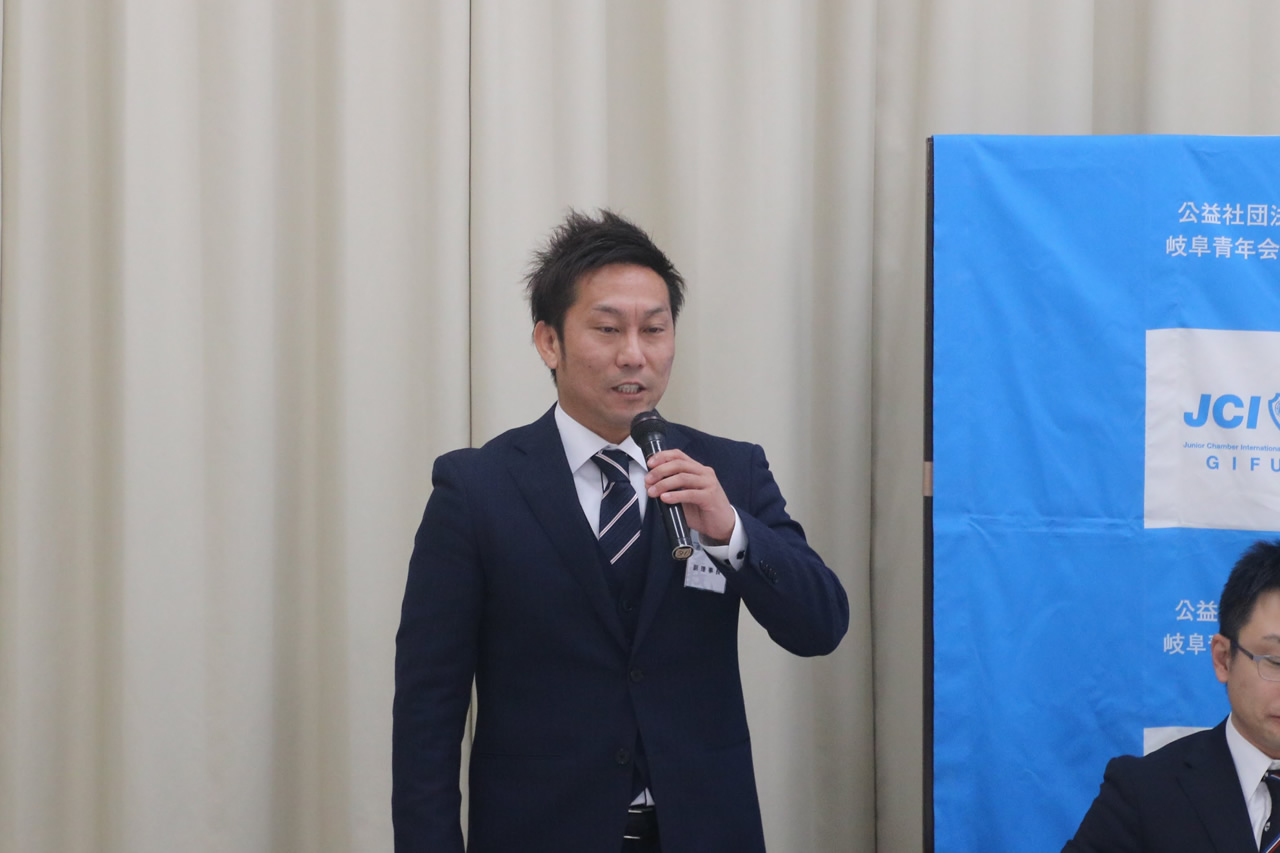 組織運営グループを担当する細野専務からは、公益に資する団体として今後も成長していくためには、岐阜JCがこれまで培ってきた歴史と伝統を継承し、プロセスを重視する姿勢で物事に取り組むと説明がありました。