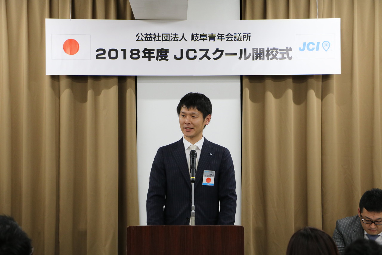 JCスクール委員長赤佐浩一君より、「掲げた決意や目標を達成するために、どんなことがあっても羽を休めずに飛び続けて全力で頑張って頂きたい。私も全力でやっていきます」と激励の言葉が送られました。