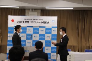 12月11日(土) 岐阜グランドホテル孔雀の間にて、新型コロナウイルス感染拡大防止対策を講じた上で、2021年度JCスクール閉校式を厳粛な空気の中、開催致しました。 スクール生がこの1年間で学んだことを振り返り、次年度以降の活動をどのように行うのかを決意しました。
