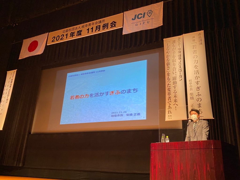 11月26日(金)18:30~21:00 文化センターにて市長例会として岐阜市長柴橋正直氏をお招きし開催致しました。