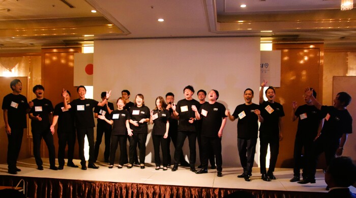 懇親会の締めくくりには、スクール生が予定者の皆様への歓迎の気持ちを込めてアトラクションを披露しました。