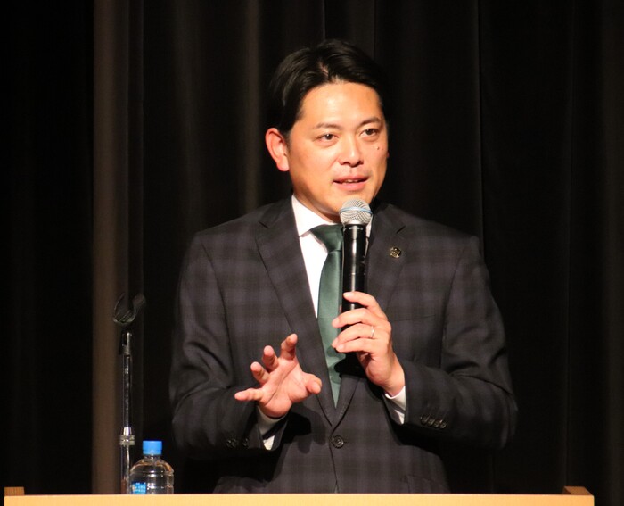 第二部では、岐阜市長 柴橋正直氏より、まちづくり事業、青少年心身育成事業に対して講評をいただいた後、「ひとが育ち、ひとが集うぎふのまち」という演題でご講演を頂きました。講評では、市政の方針と岐阜青年会議所が行った事業の関連性に触れていただき、また、講演では岐阜市長の熱い想いを聴くことで、行政の課題認識や施策の方針を理解すると共に、今後の岐阜青年会議所の活動にどのように取り組むべきかを考える良い機会となりました。