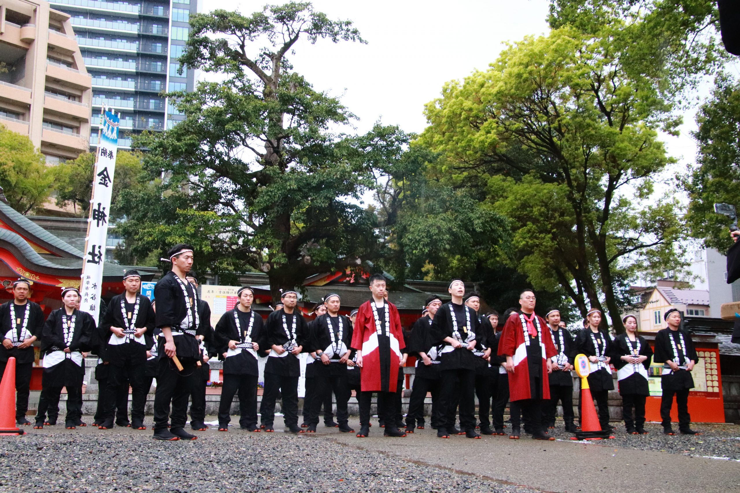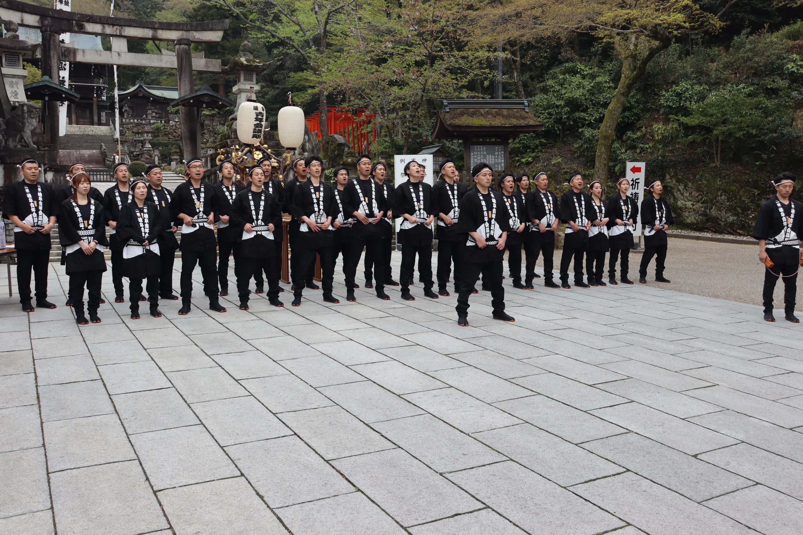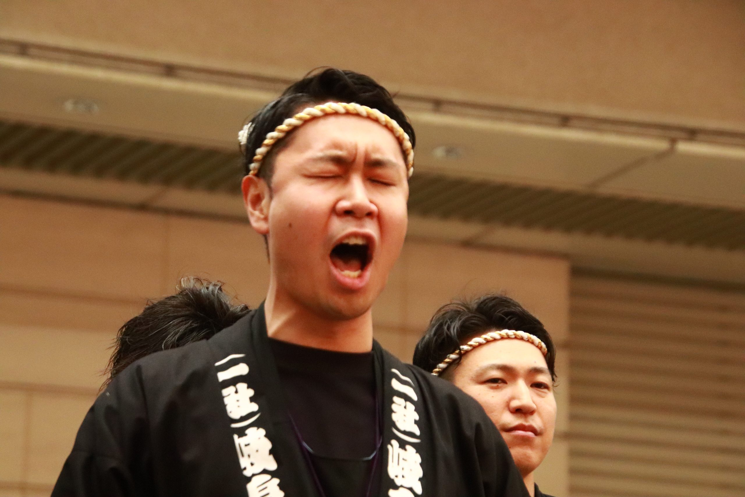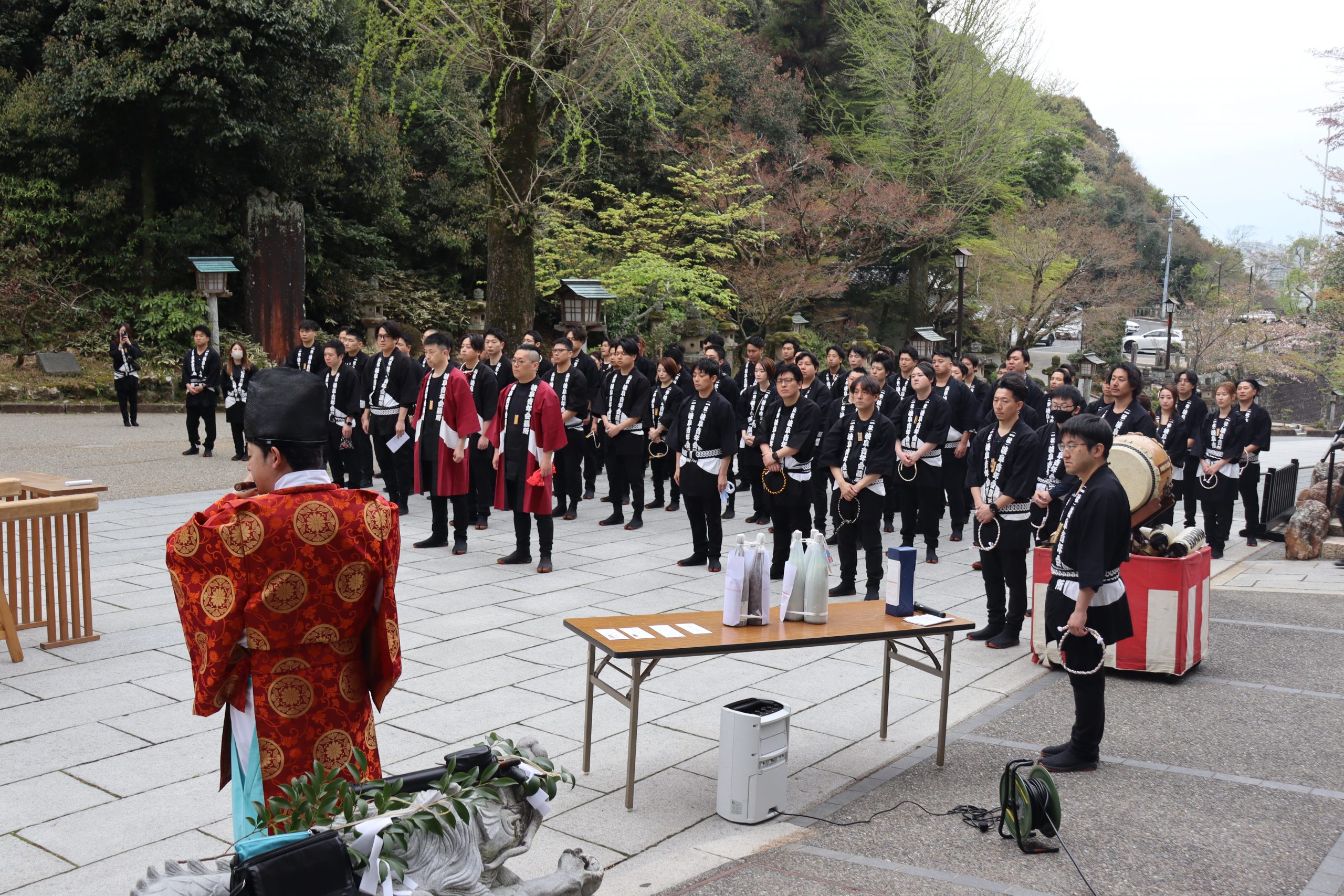 早朝より、伊奈波神社にて4月例会の成功と、今後の事業の成功を祈願しました。そして、本年度、岐阜JCに入会したJCスクール委員会メンバー(以下スクール生)が約1カ月半に亘り練習を重ねてきた「木遣り唄」を唄い上げ、スクール生の4月例会に懸ける意気込みを披露させていただきました。