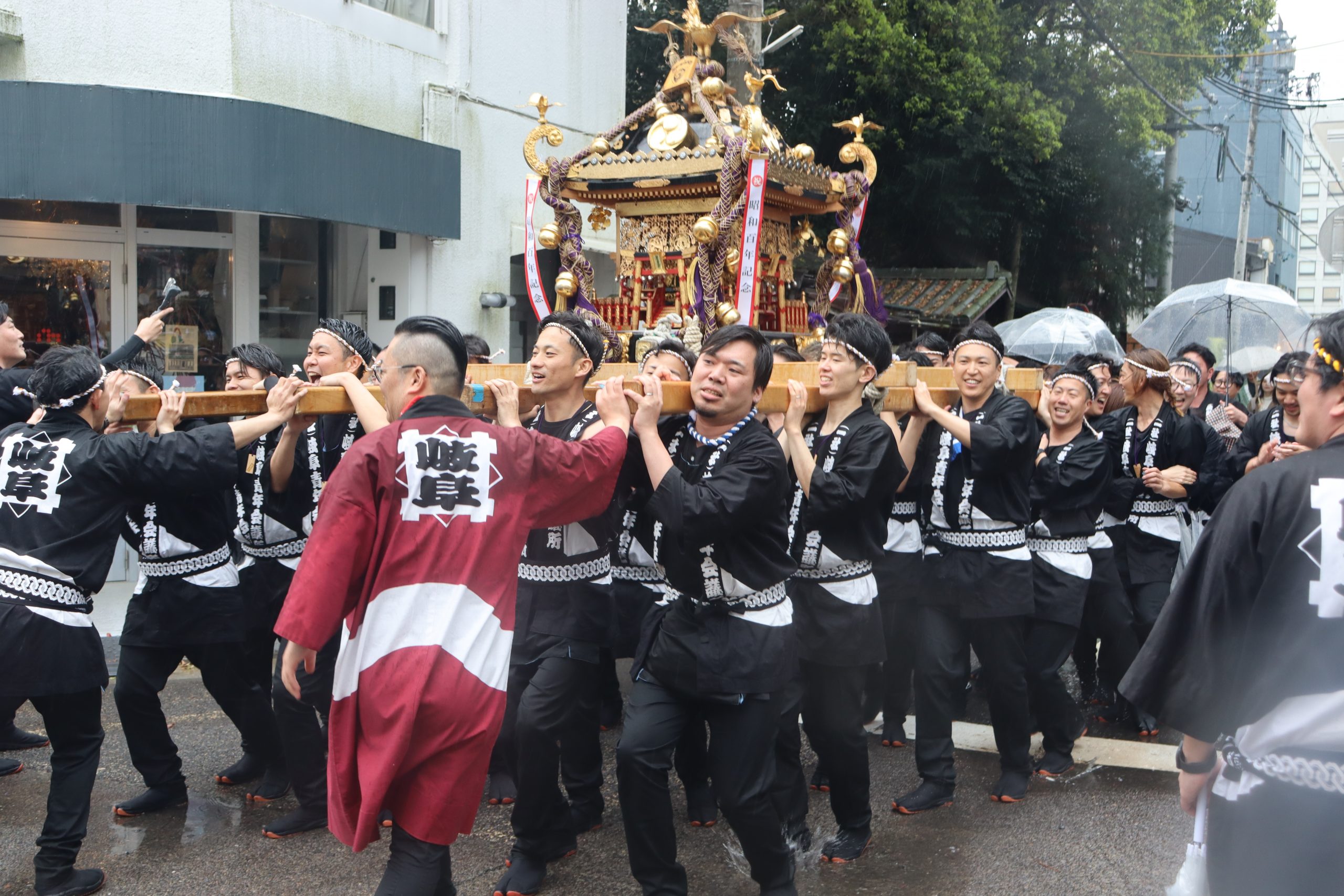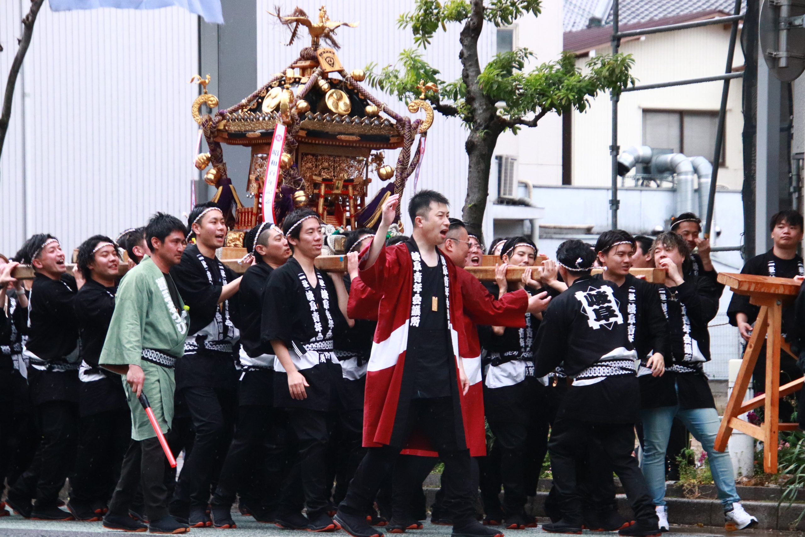 あいにくの天候で道三まつり、岐阜まつり神輿パレードは中止となりましたが、金神社神輿奉賛会岐阜睦様と共に、ぎふのまちに活気をもたらすため、威勢良く神輿を担ぎました。