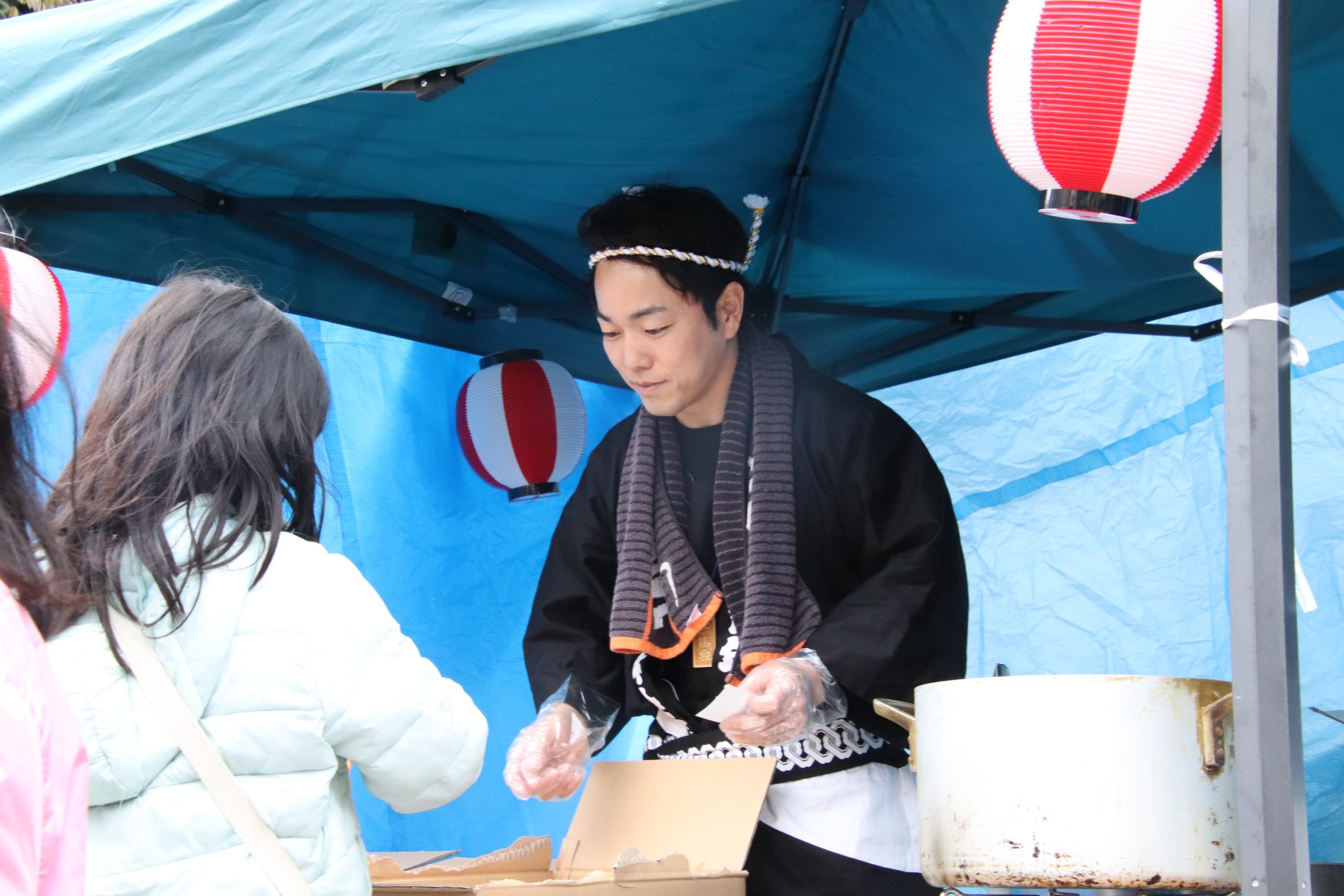 その後、金公園にて輪投げ・射的の縁日屋台を開設し、景品として和菓子三種、甘酒、豚汁を, 会場にお越しいただいた市民の皆様へ振る舞いました。